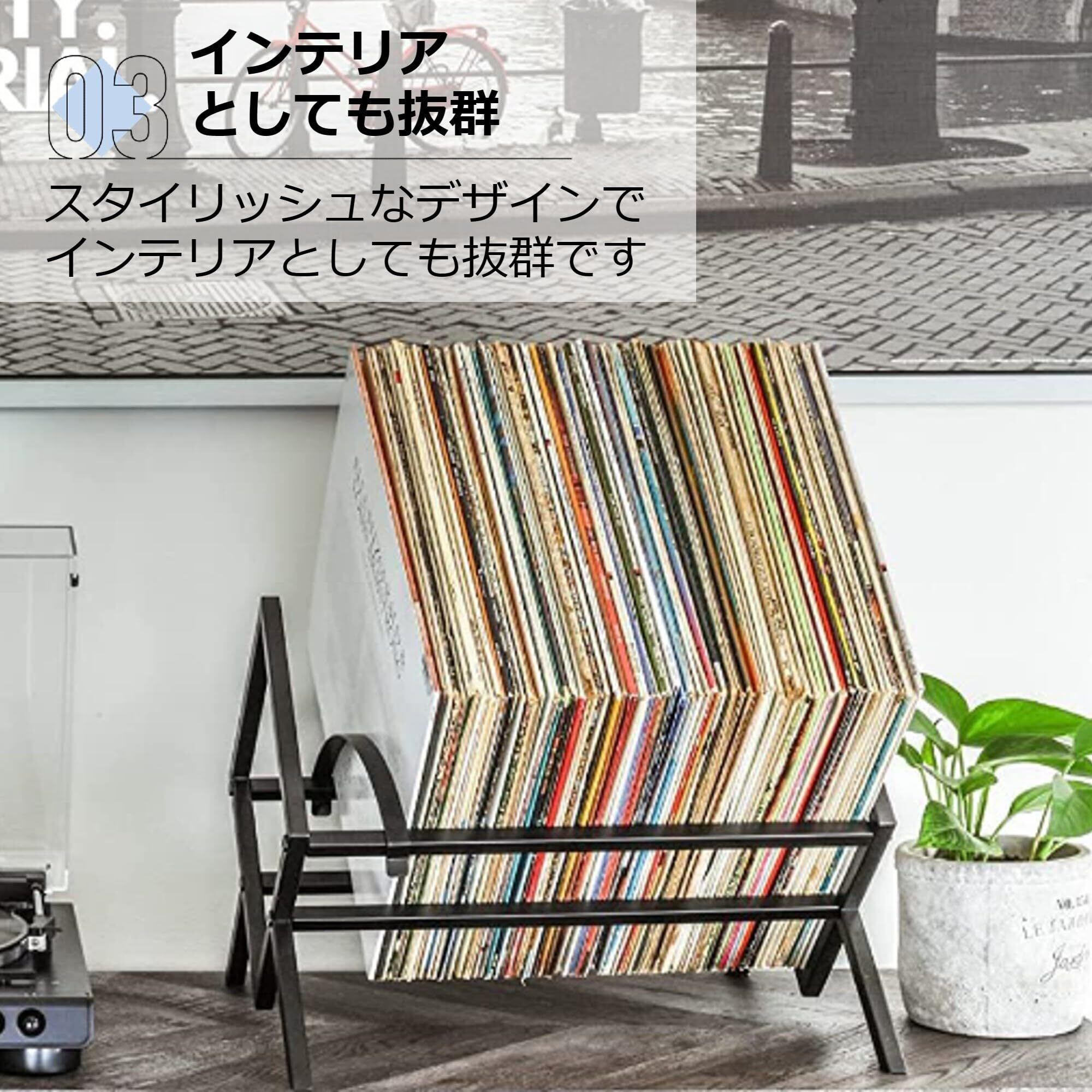 ✨【この金属製レコードラックは、耐久性とデザイン性を兼ね備え、あなたのスペースに洗練された雰囲気をプラスします!】シンプルなブラックの仕上げは、どんなインテリアにも調和し、音楽や本を美しくディスプレイできます。
