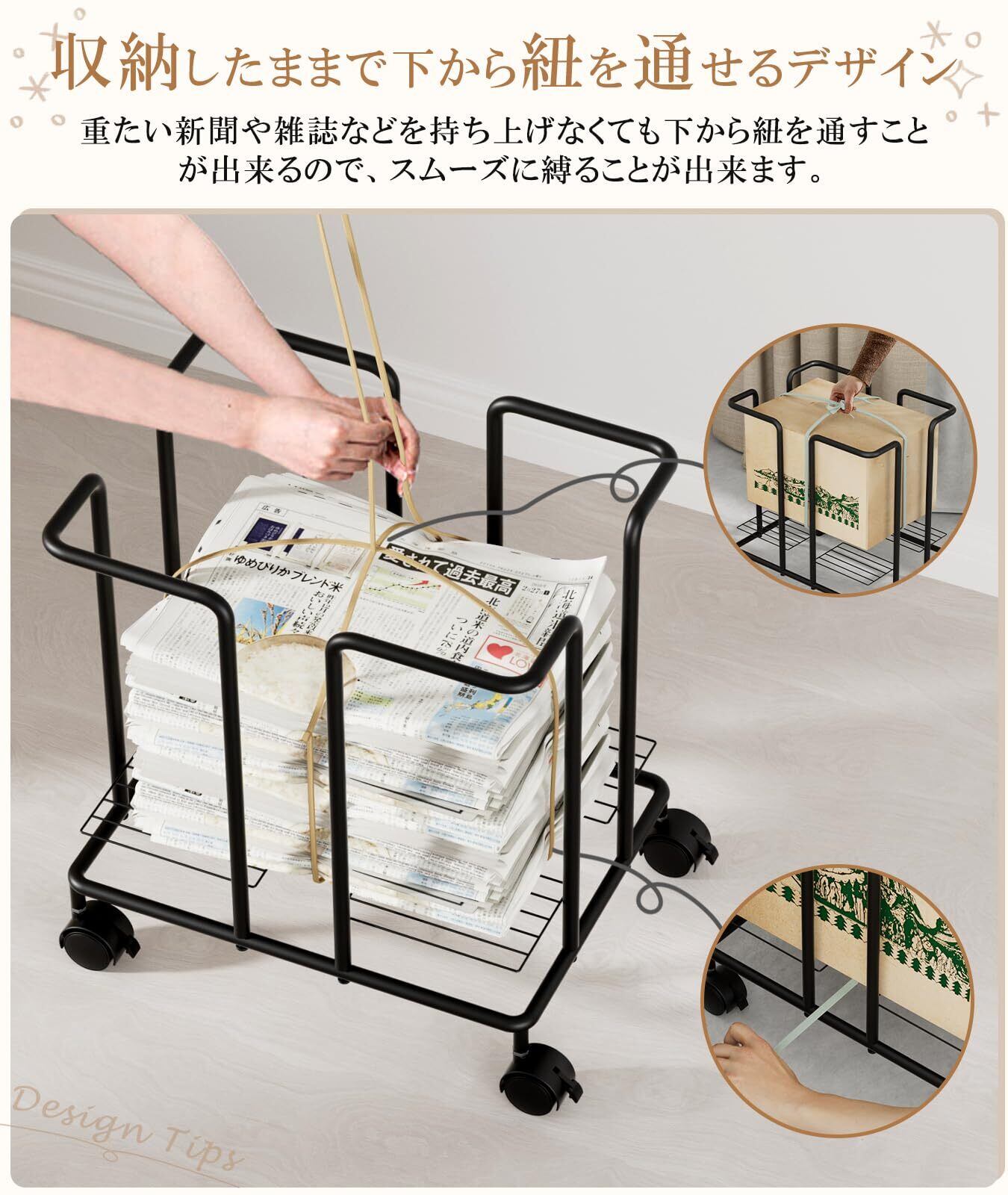 新聞ストッカー 新聞紙ストッカー DAIWIN 紐が通せる 耐荷重10kg 新聞雑誌ストッカー 新聞入れ キャスター付き ストッパ機能 新聞紙 回収袋 A4雑誌 古紙 ストッカー 雑誌 収納 移動・掃除便利 新聞ラック ストッカー 収納 ブラック
