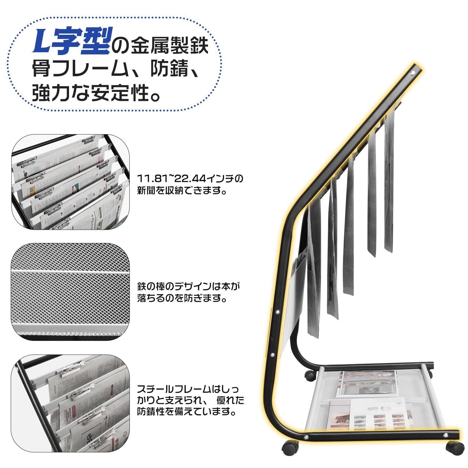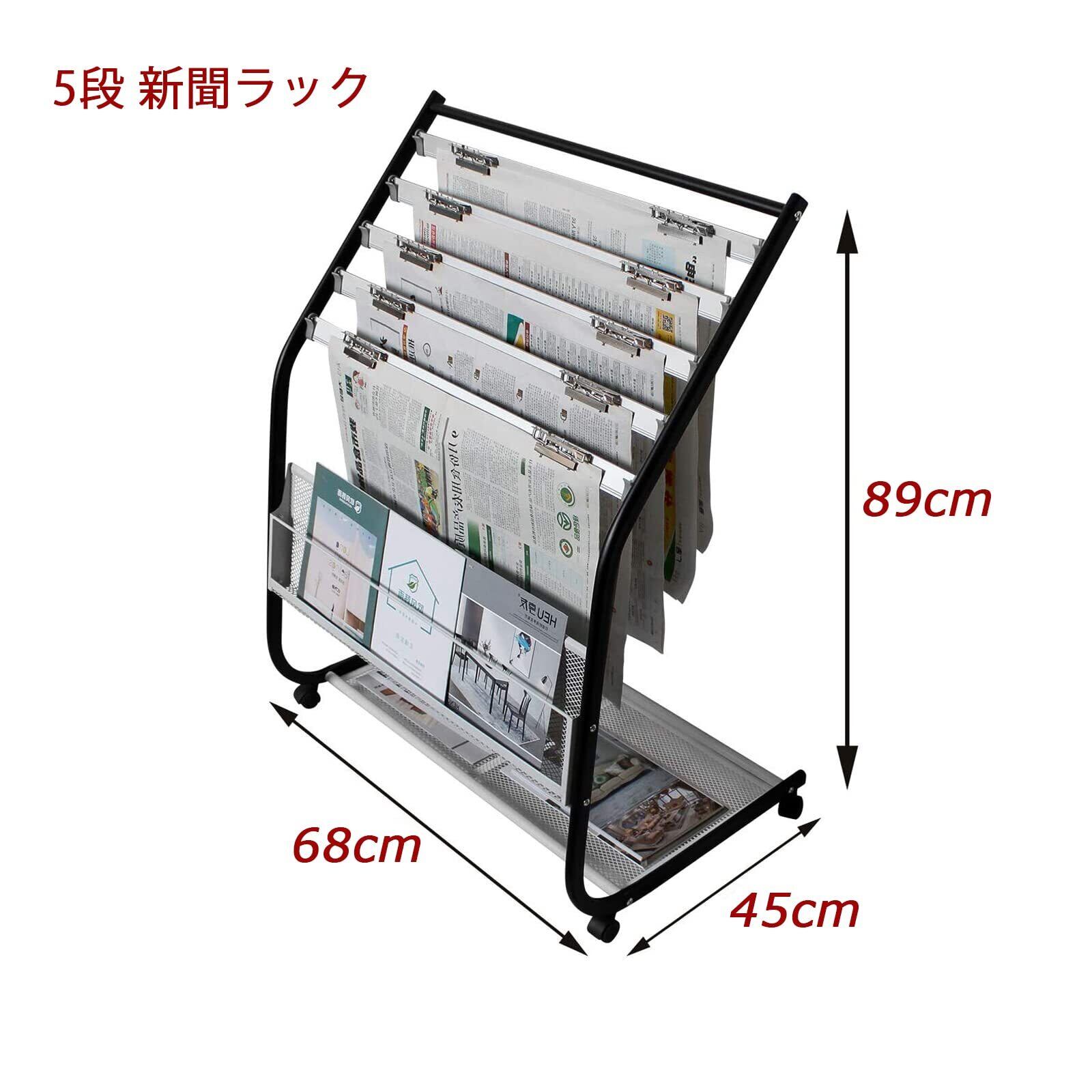 新聞ラック 新聞ホルダー 5段 キャスター付き 新聞雑誌ラック 新聞ストッカー 新聞 新聞掛け 幅68CM 大容量 収納しやすい 簡単組立