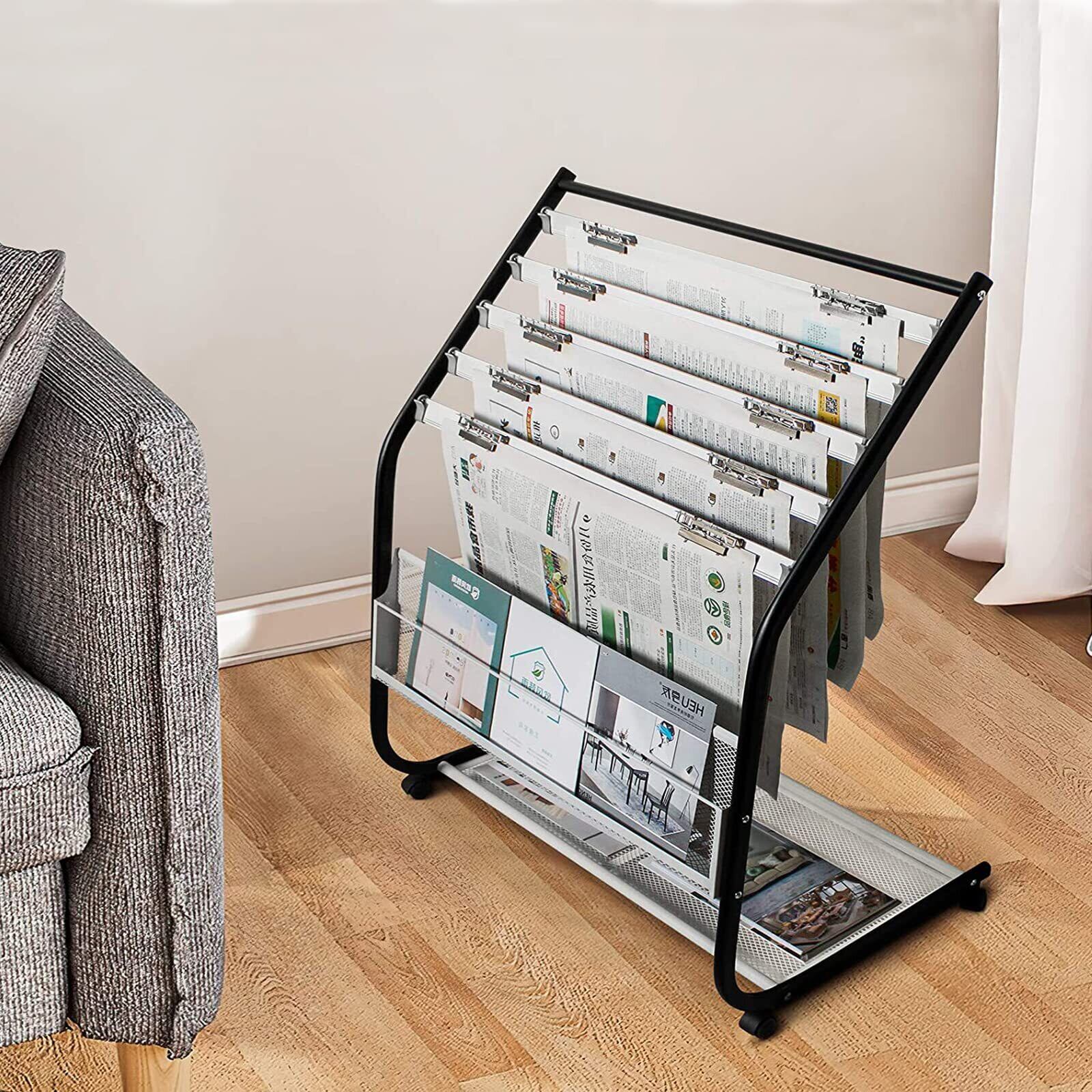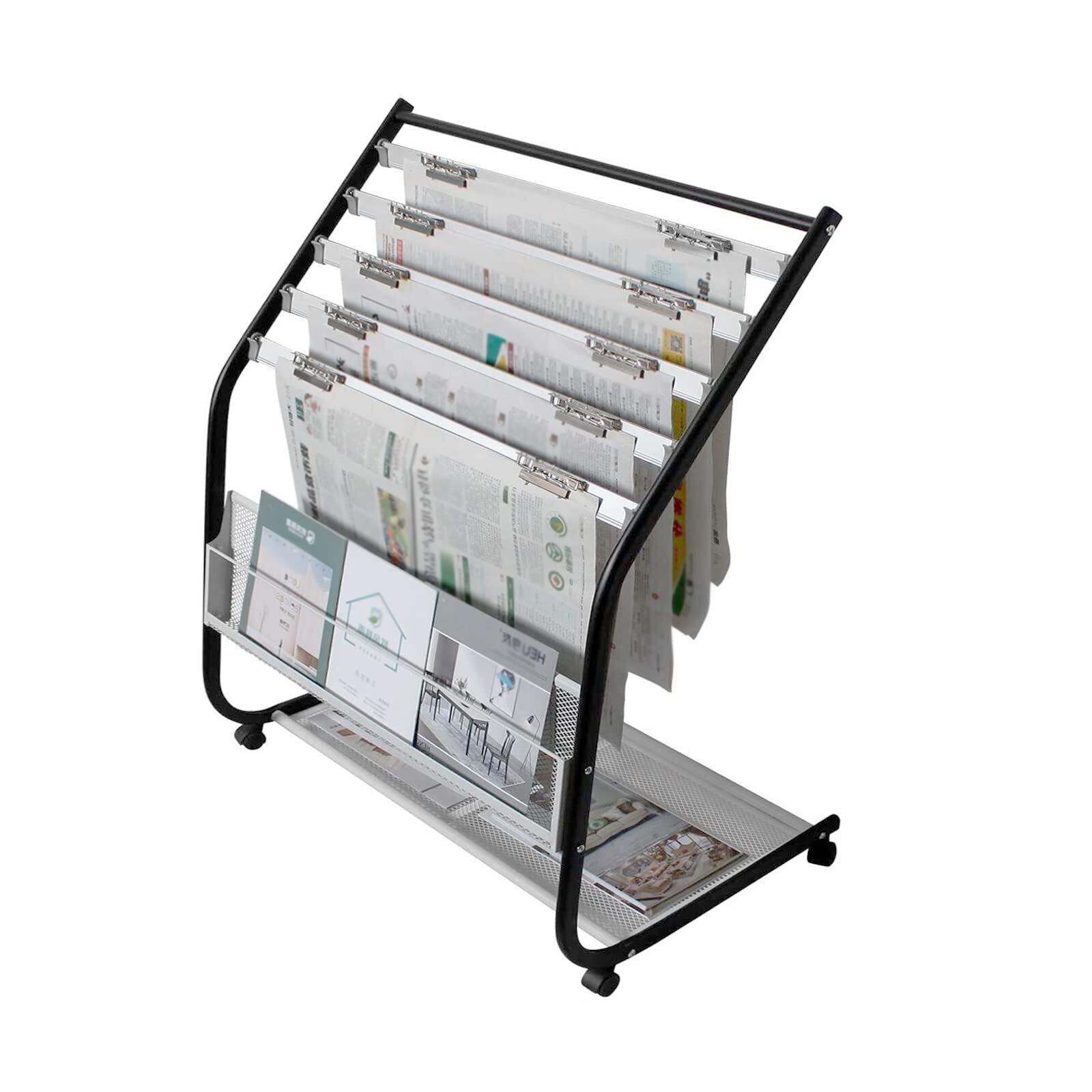 \【◆新聞ラック 新聞ホルダー 5段 キャスター付き】大容量で収納も簡単、スッキリ整理!/