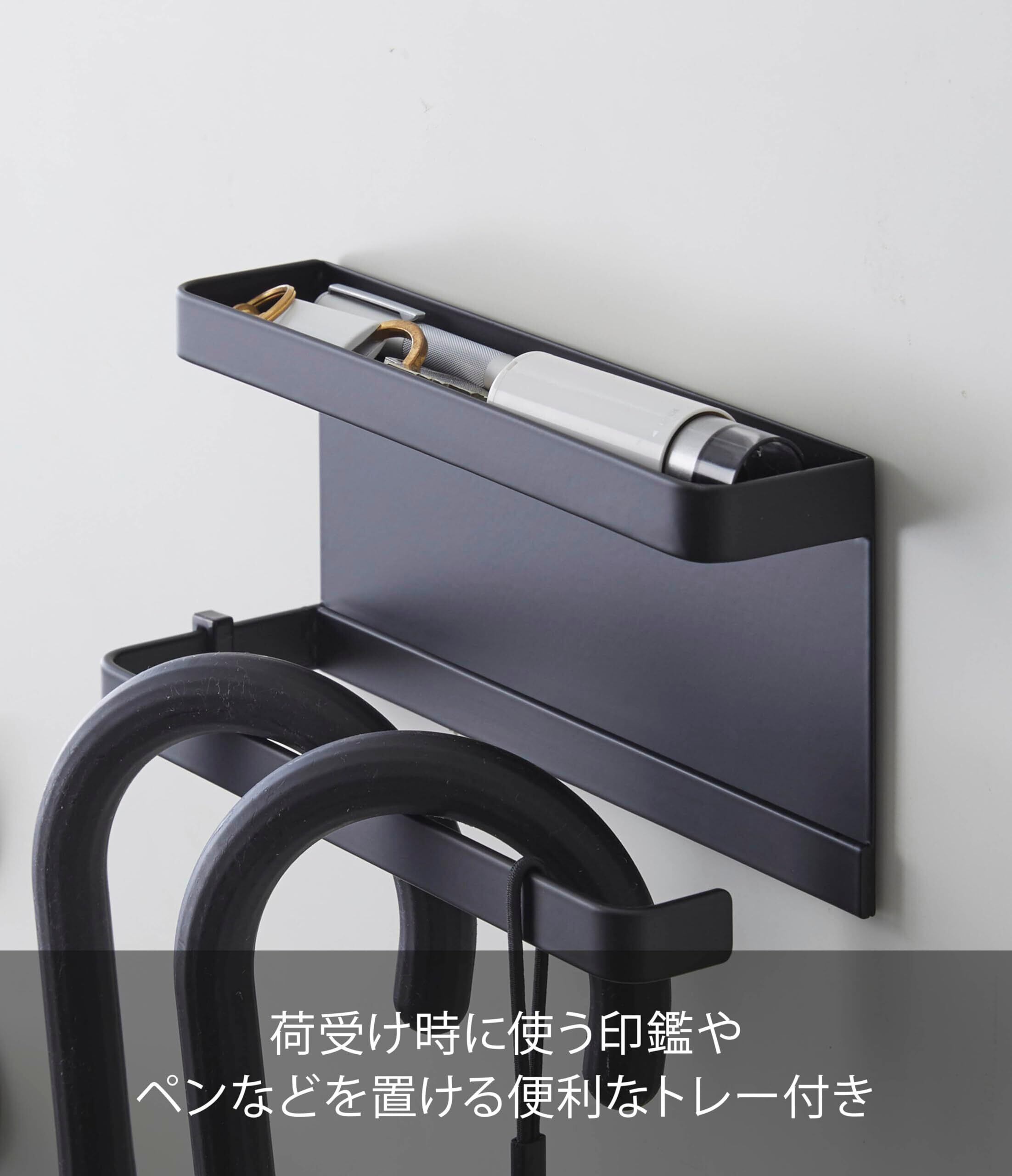 \【◆山崎実業(Yamazaki) トレー付きマグネット アンブレラホルダー ブラック】玄関をスタイリッシュに演出!/