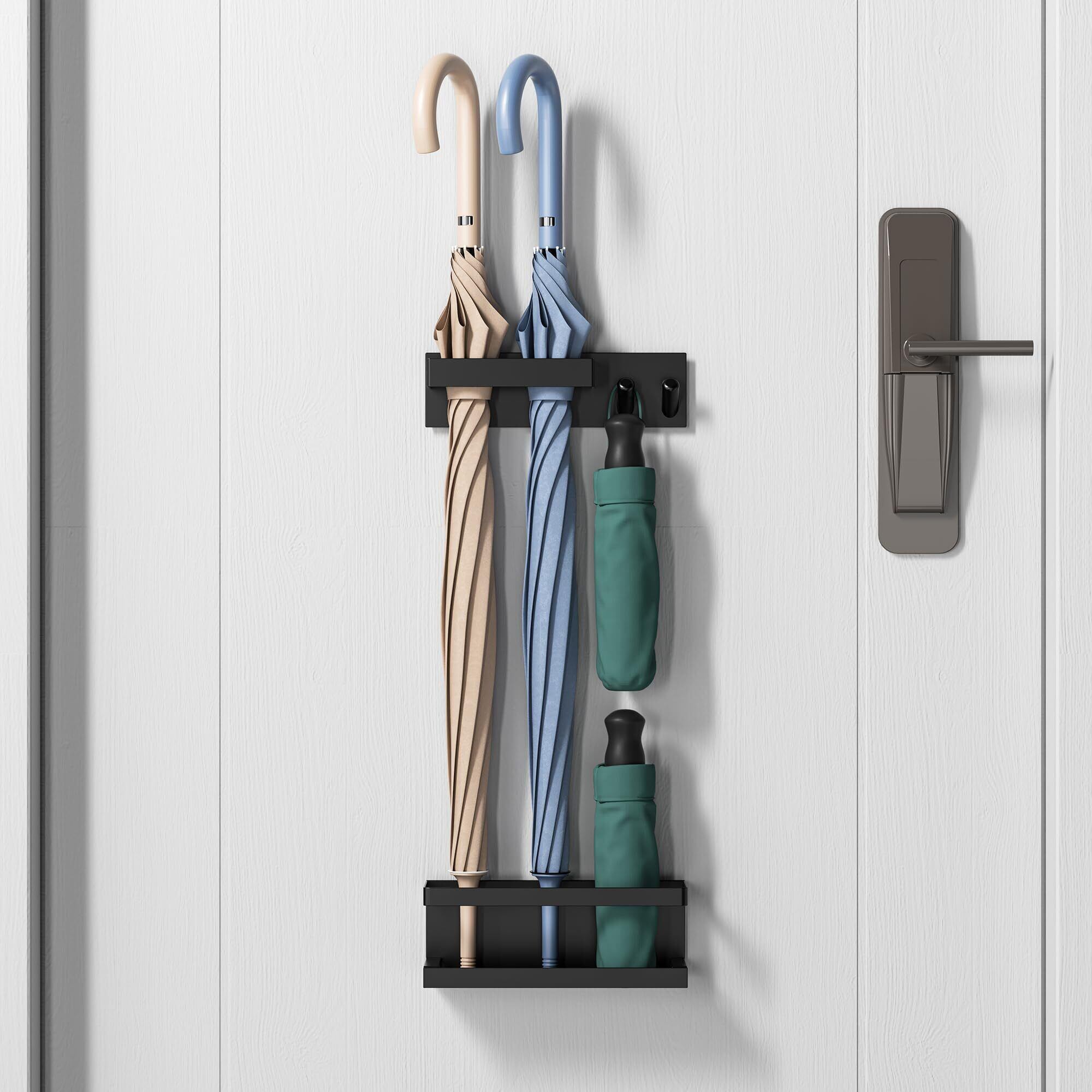 \【◆傘立て マグネット アンブレラスタンド 玄関収納 屋外収納 トレー付き 多機能傘収納 玄関の壁掛け式 ブラック】実用性とスタイルが融合した傘立て!/