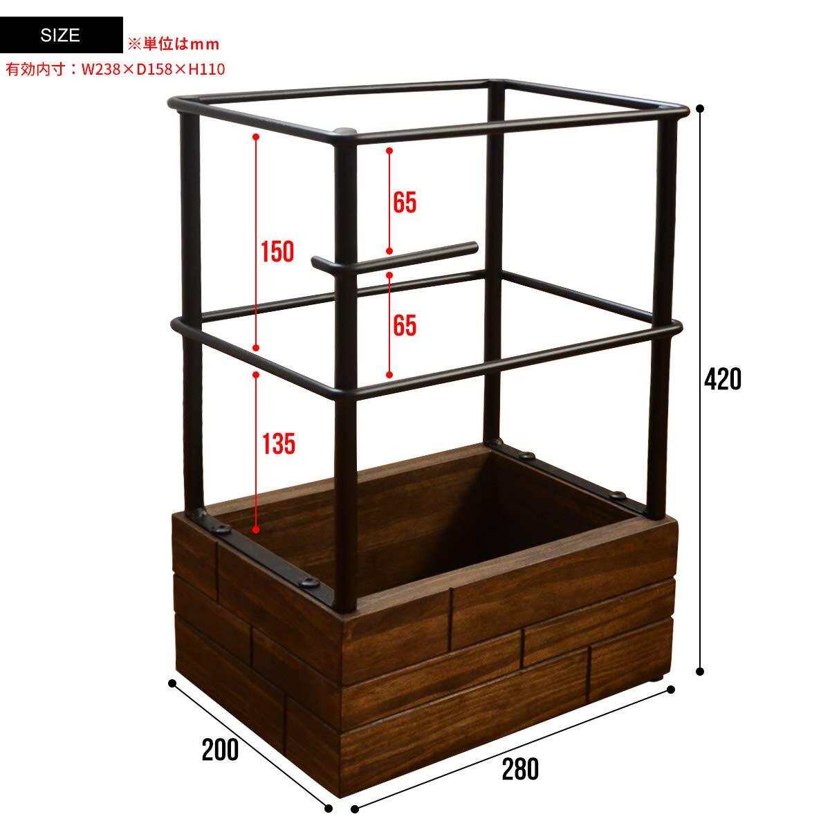 エイジング加工を施した天然木とスチールフレームの組み合わせがヴィンテージ感を演出。ブロック調デザインで、玄関やエントランスのアクセントにもなるおしゃれな傘立て。