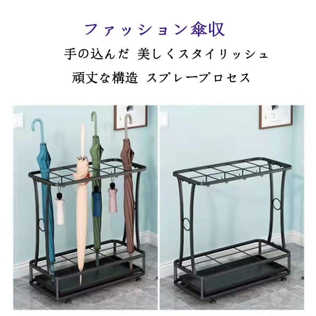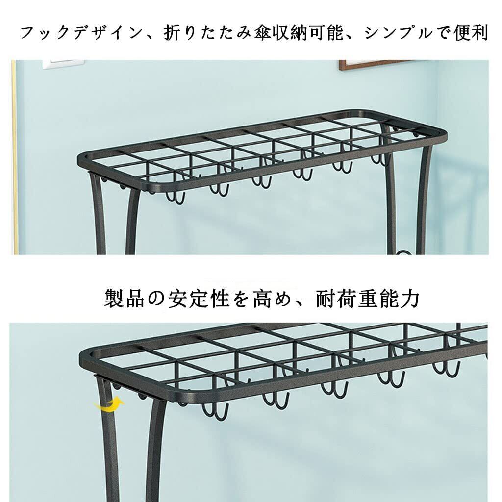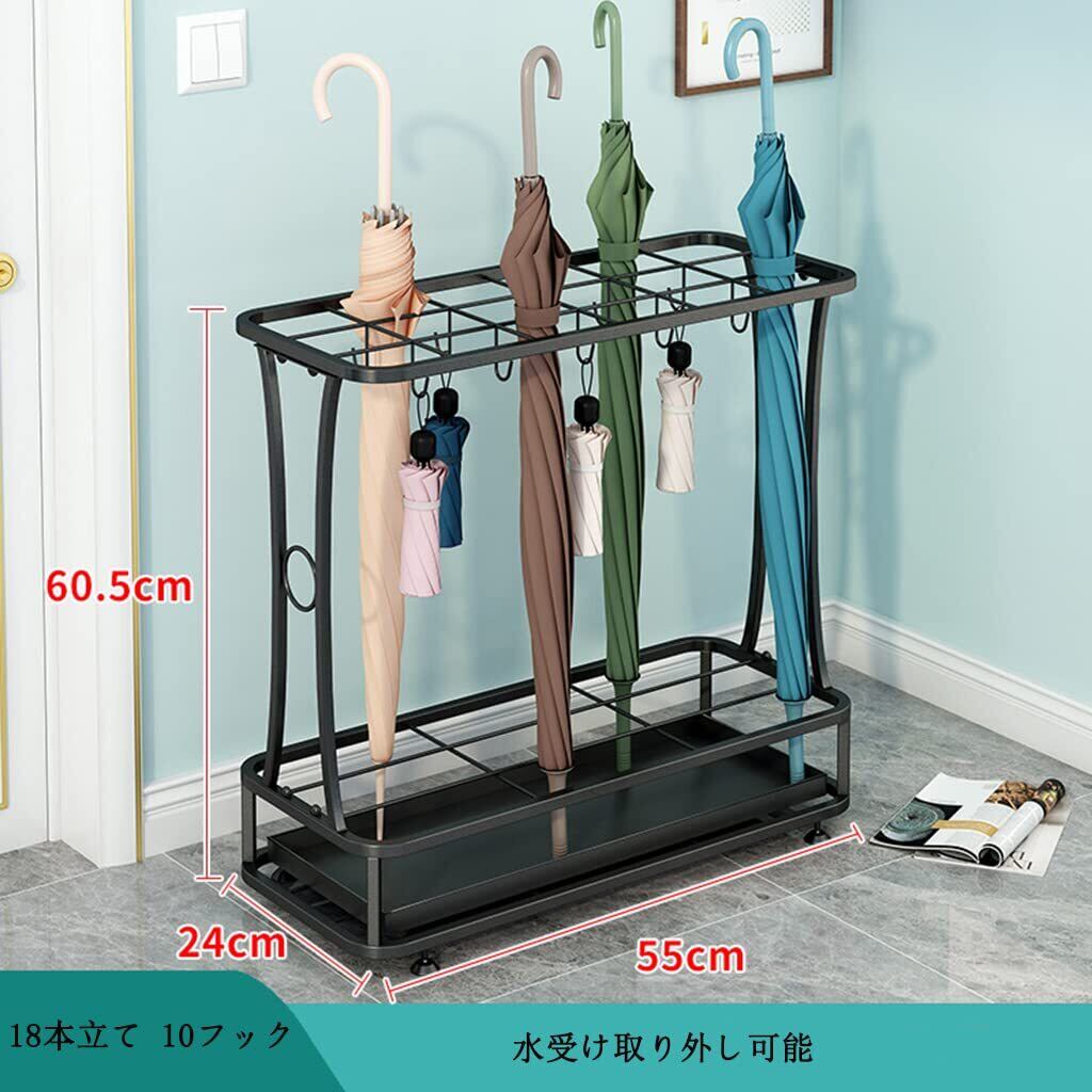 傘立て 玄関収納 18本立て 10フック付き 水受け取り外し可能 傘収納 大容量 安定 組立品 おしゃれ人気 ブラック 幅55×奥行24×高さ60.5cm (18本立て-10フック付き)