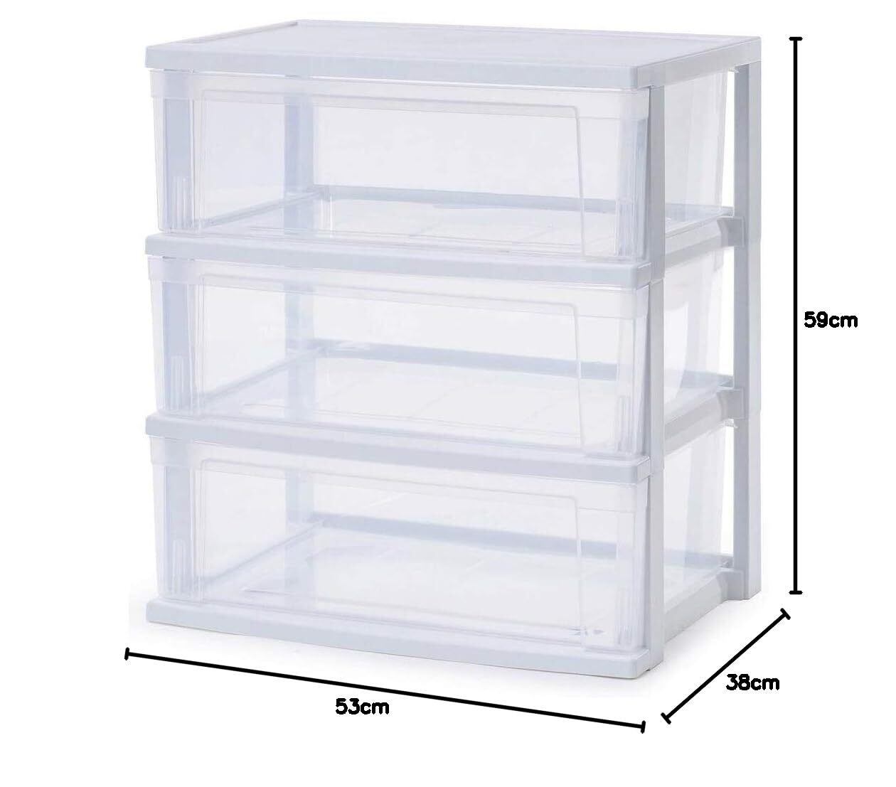 アイリスオーヤマ チェスト ワイド 3段 日本製 簡単組み立て 幅53×奥行き38×高さ59㎝ ホワイト/クリア プラスチック天板 NSW-543(新モデル)