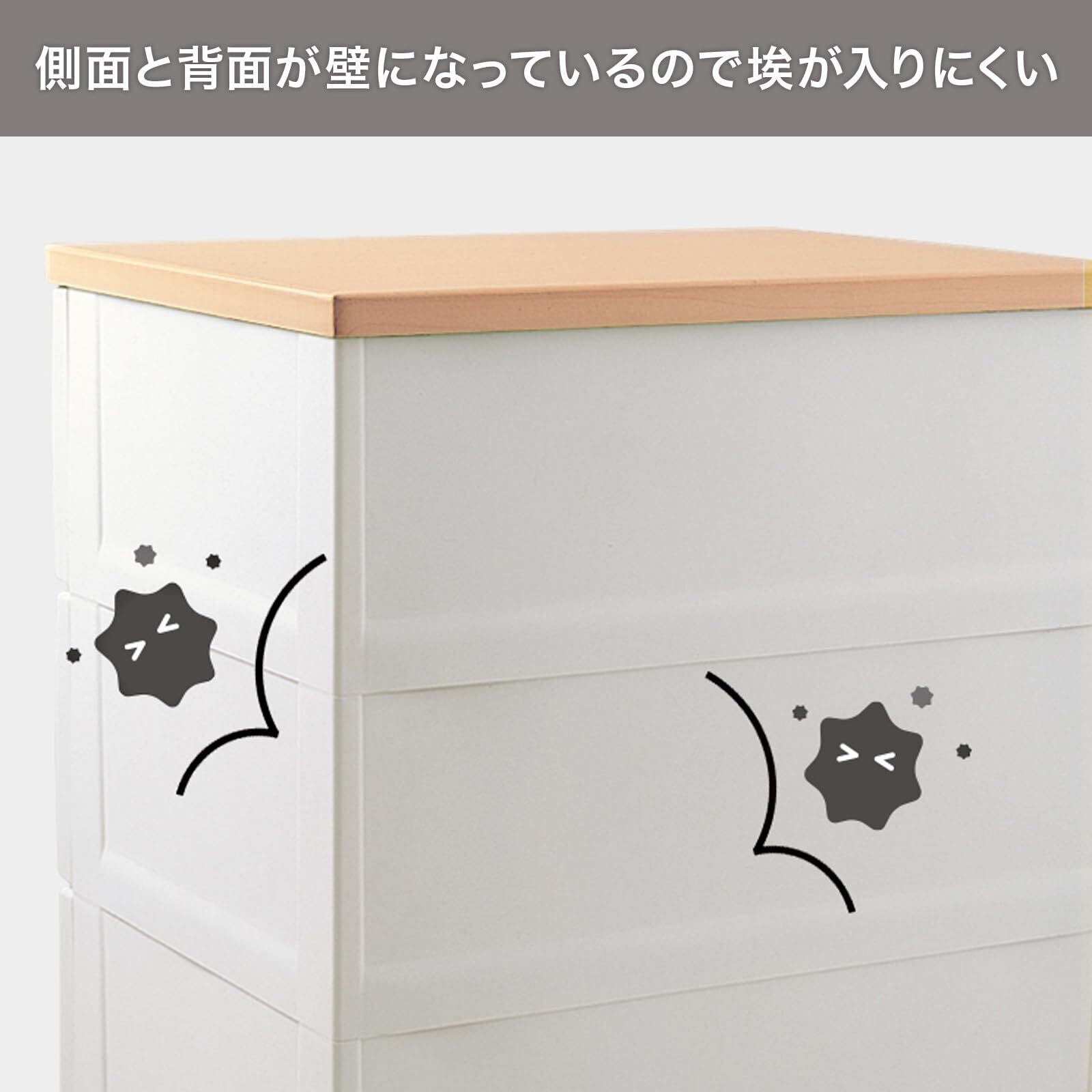 ナチュラルな木製天板を使用したシンプルなルームチェストです。取得済みのロック機能やスムーズな引出しローラーなど、嬉しい機能が満載です。