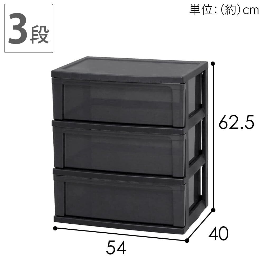 アイリスオーヤマ チェスト ワイド 3段 幅54×奥行40×高さ62.5cm グレー プラスチック W-543