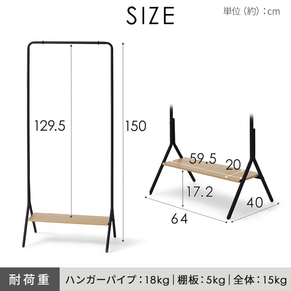 アイリスオーヤマ スペパ ハンガーラック コートハンガー おしゃれ 北欧 スリム 棚付き ハンガーラック ナチュラル/ブラック アイリスオーヤマ HPI-640 HIROBIROシリーズ
