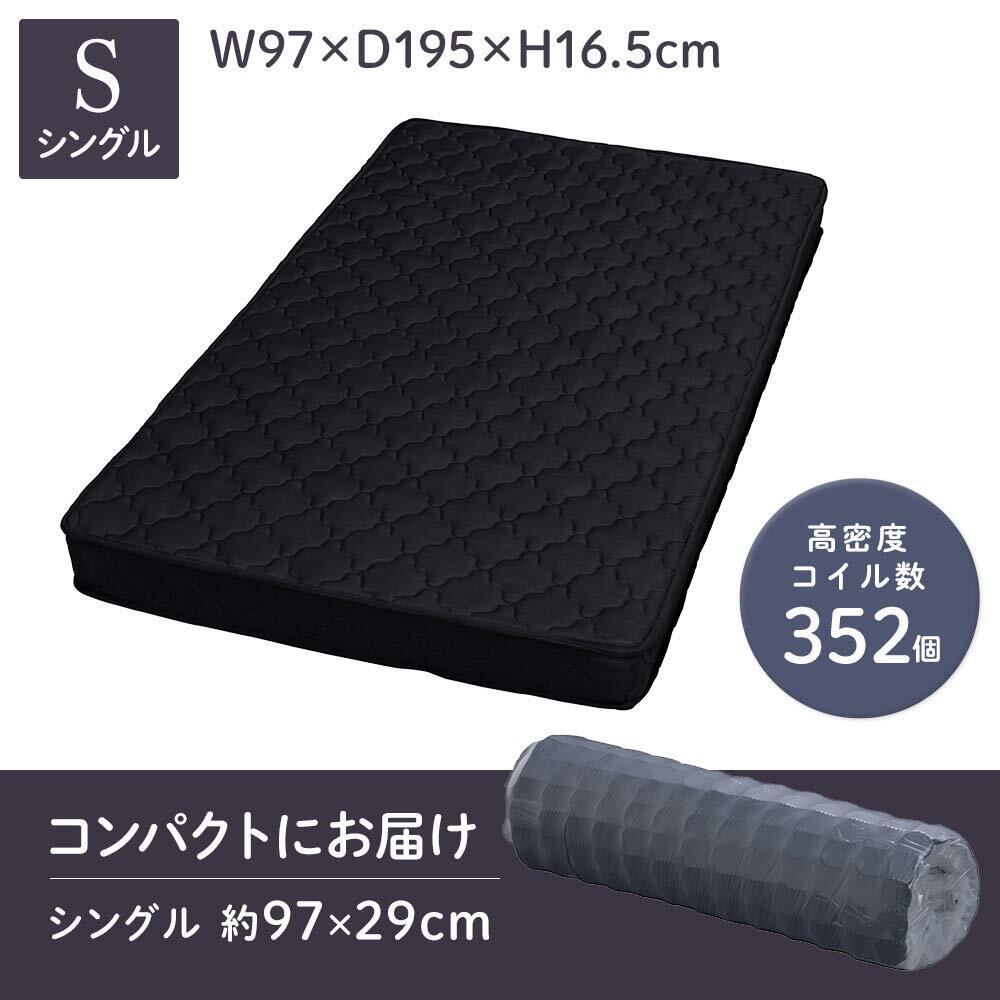 アイリスプラザ 長持ちボンネルコイルマットレス 厚さ16.5cm 連結コイル352個 ムレにくい高通気性 ISO9001取得工場で生産 表面やわらか 内側ウレタン2層構造 らくらく設置 圧縮梱包でお届け シングル ブラック BCMT-S