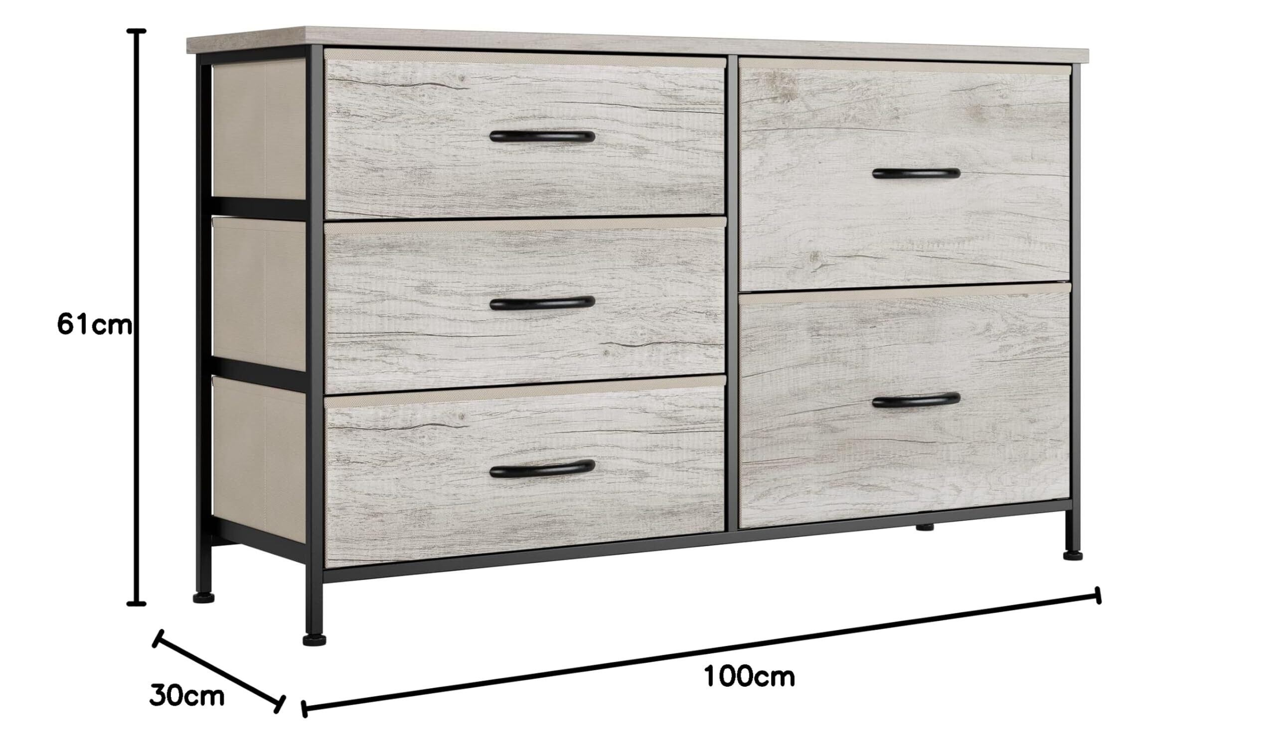 Nicehill チェスト タンス 収納チェスト オーガナイザー 収納ケース 衣類・キッズ・ベイビー用ワイドチェスト 衣類収納 木製天板 組立簡単 3段5杯(奥行き30㎝ x 幅100.0㎝ x 高さ61.0㎝)(ライトウッドグレイン)