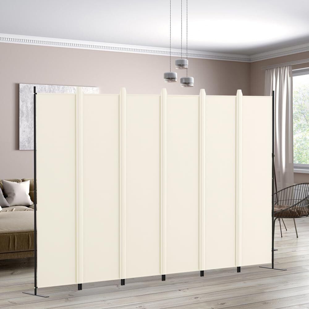 KELIXU パーテーション 間仕切り 6連 自立式 衝立 カバーストリップ付き 高さ1.8m×幅3m 布タイプ 折りたたみ 仕切りパネル 軽量 クロスパーテーション 目隠し 屏風 おしゃれ 組み立て簡単 部屋 オフィス 会議室 (ベージュ)