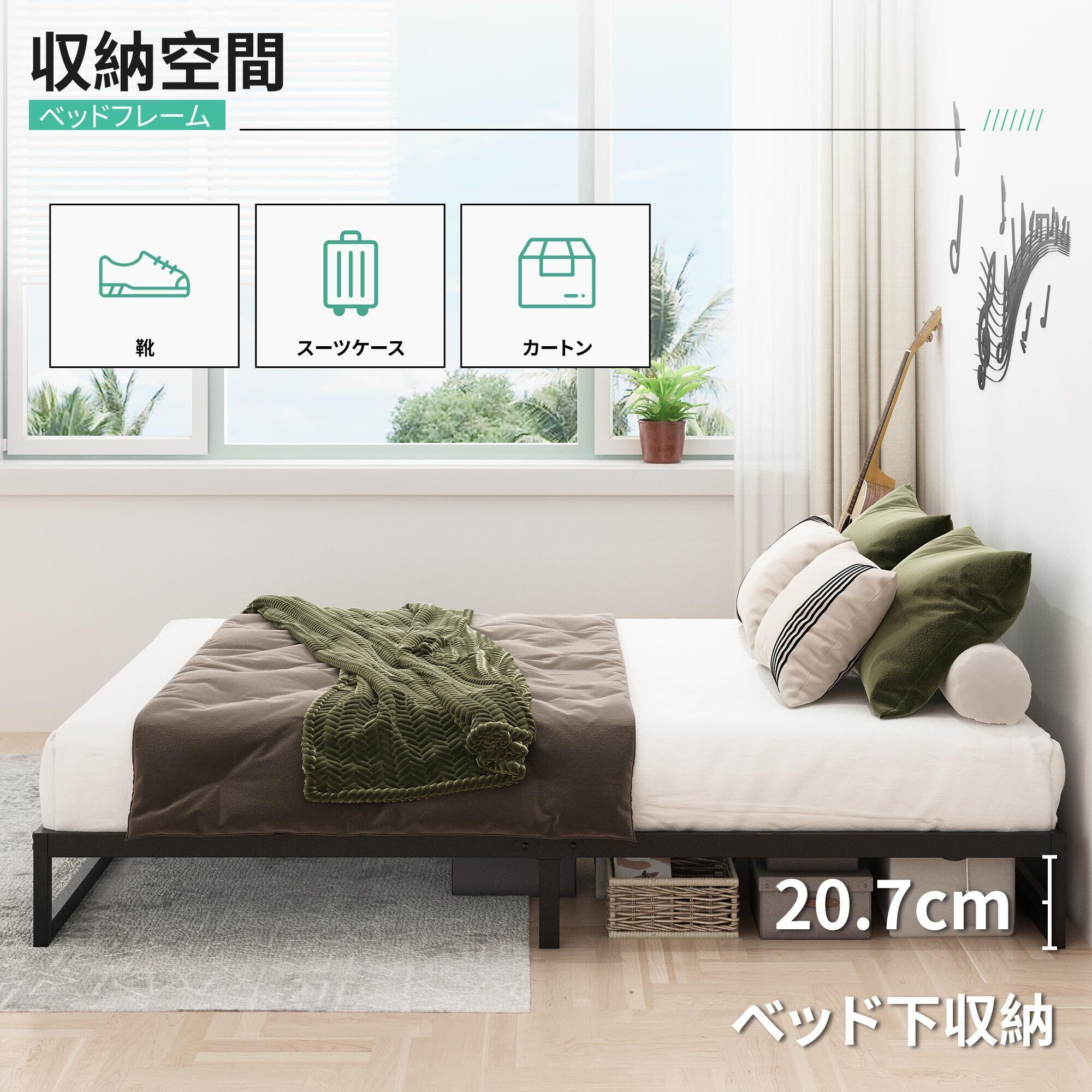 【ベッド下収納】ベッドの下には21.7cmの収納スペースがあり、大容量の収納でお部屋をすっきり綺麗にさせます。脚がついている分ベッド下のスペースが広いため、掃除ロボットや箒などを使って掃除しやすいのがメリットです。