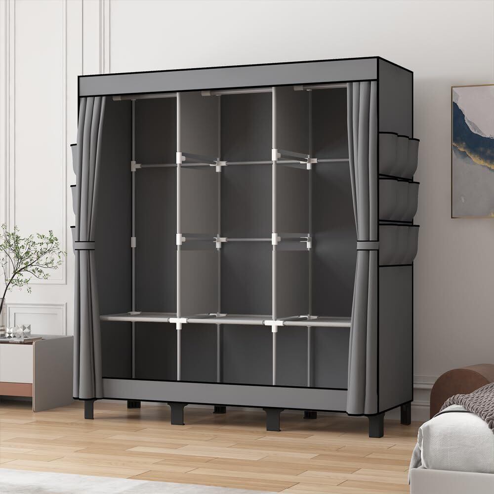 簡易ポータブル組立クローゼット 防湿・防塵・防カビの不織布クローゼット寮寝室服収納キャビネット多層収納整理キャビネット、簡易ワードローブ. (グレー, 130cm 幅)