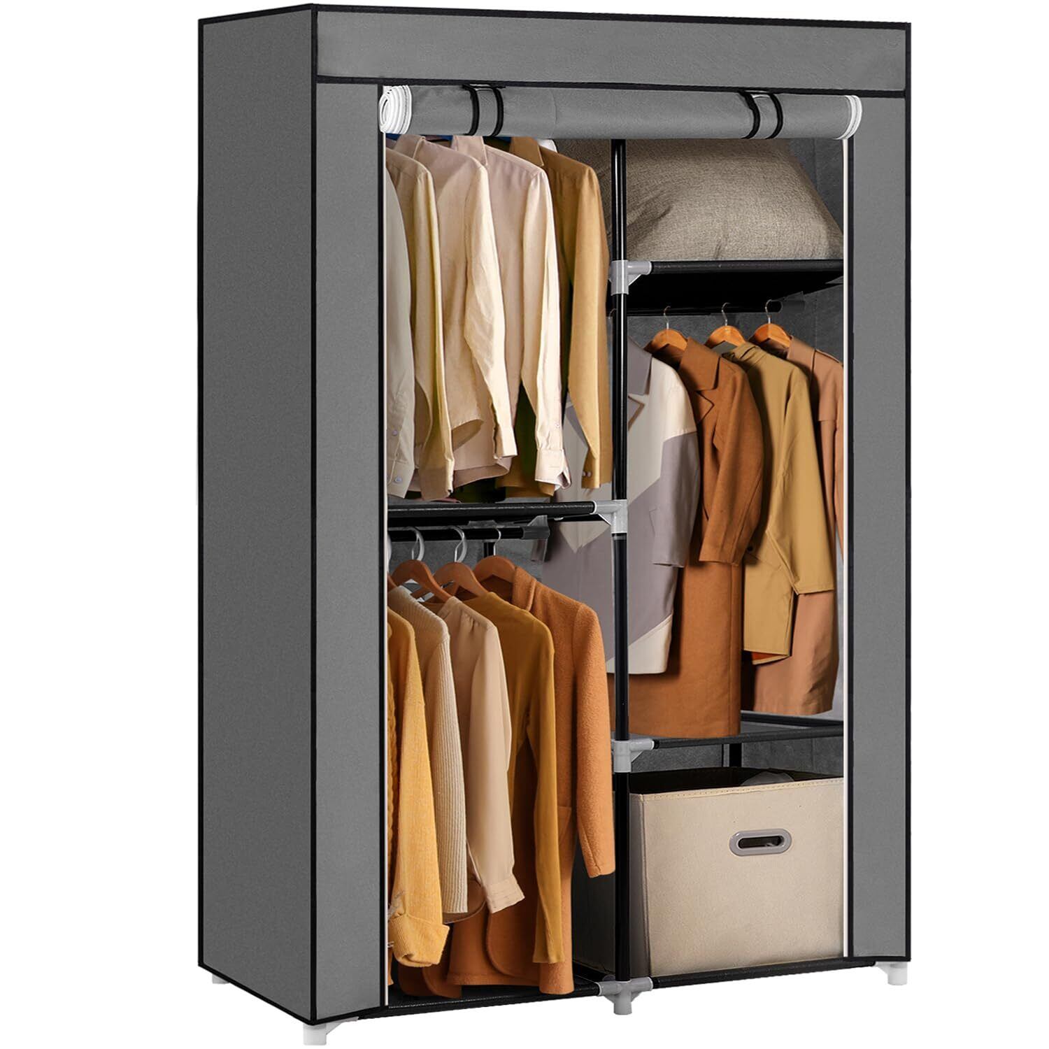 ワードローブ カバー付き クローゼット 不織布 直径19mmのスチールパイプ 大容量 ハンガーラック 簡単組み立て式 衣類収納ラック 省スペース防水 防塵 防汚 耐用 幅 88×奥行44×高さ165cm (グレー)
