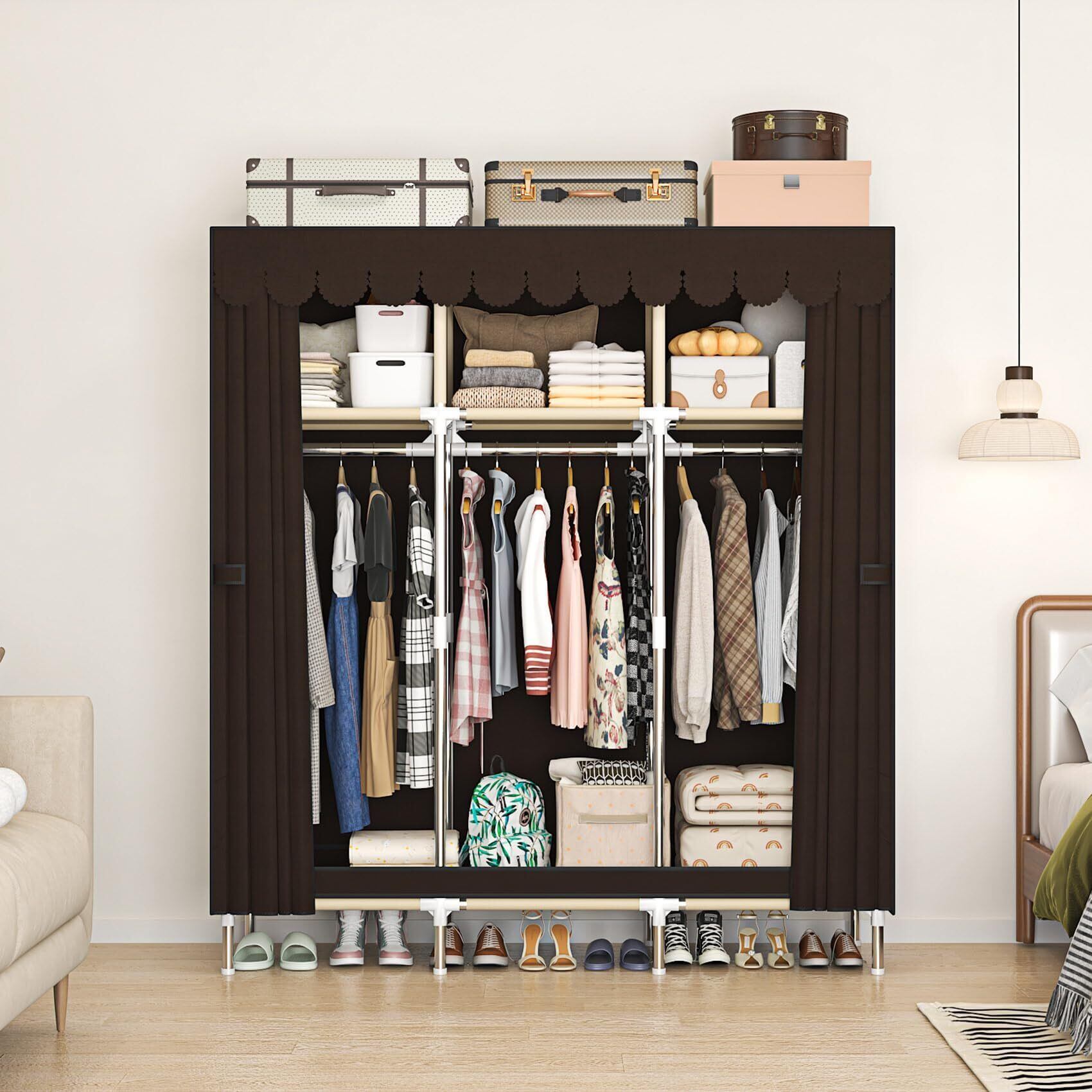 【寝室に最適】:このポータブルワードローブクローゼットは、自宅やワークショップに最適で、衣類や寝具を整理するのに役立ちます。