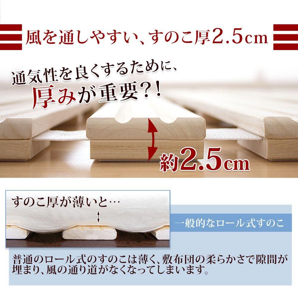 ✨【このすのこベッドは、通気性に優れ、快適な睡眠環境を提供します!】厚さ25㎜のすのこは丈夫で、マットレスをしっかり支え、心地よい眠りを実現します。