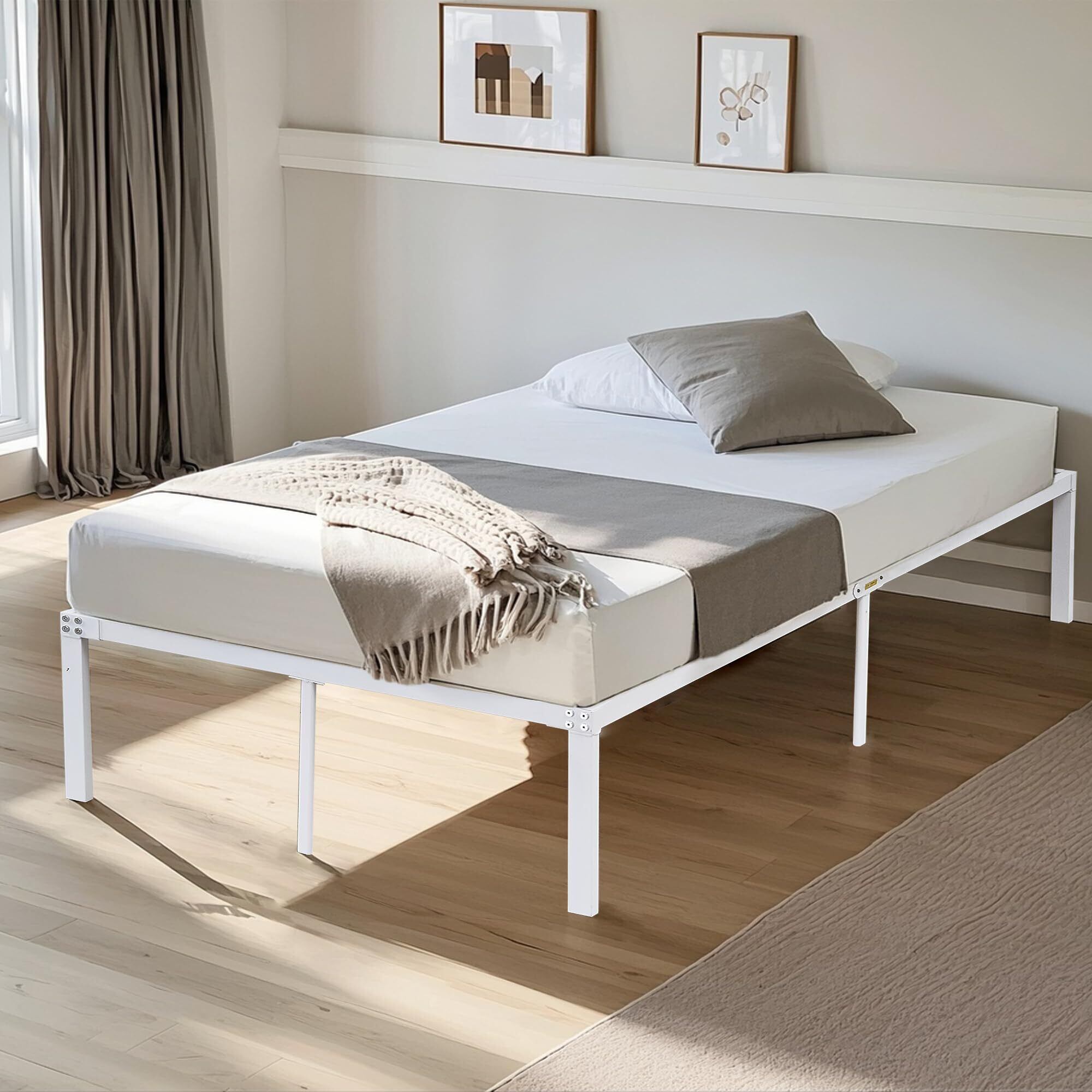 VECELO ベッド ベッドフレーム セミダブル 単品 ローベッド 頑丈 静音 フレームのみ 収納 通気性 スチール 組み立て簡単 工具付き 滑り止め付き カビ防止 寝具 ホワイト