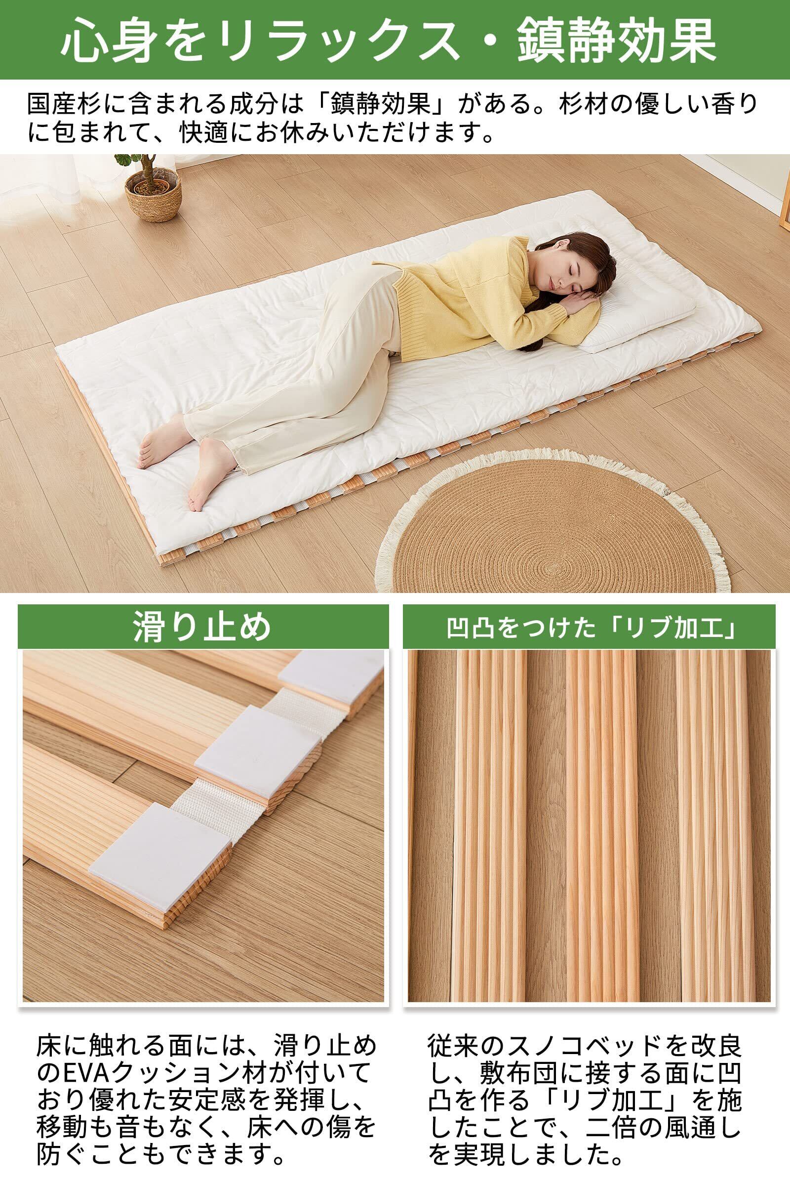 ✨【すのこマットには滑り止め機能が搭載されており、寝ている間もマットや布団がズレにくい設計です!】これにより、ストレスなく快適にお休みいただけます。