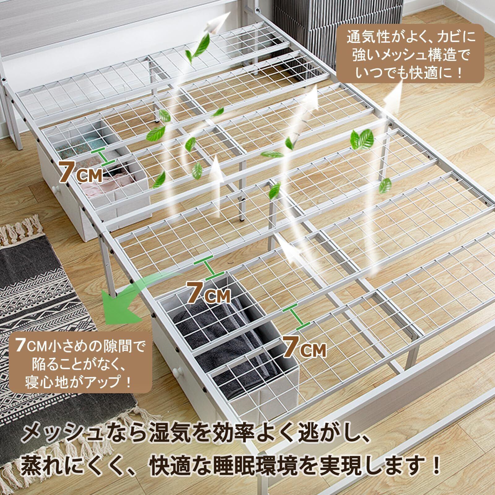 【通気性抜群メッシュ構造】通気性がよく、カビに強いメッシュ構造でいつでも快適に!7cm小さめの隙間で陥ることがなく、寝心地がアップ!