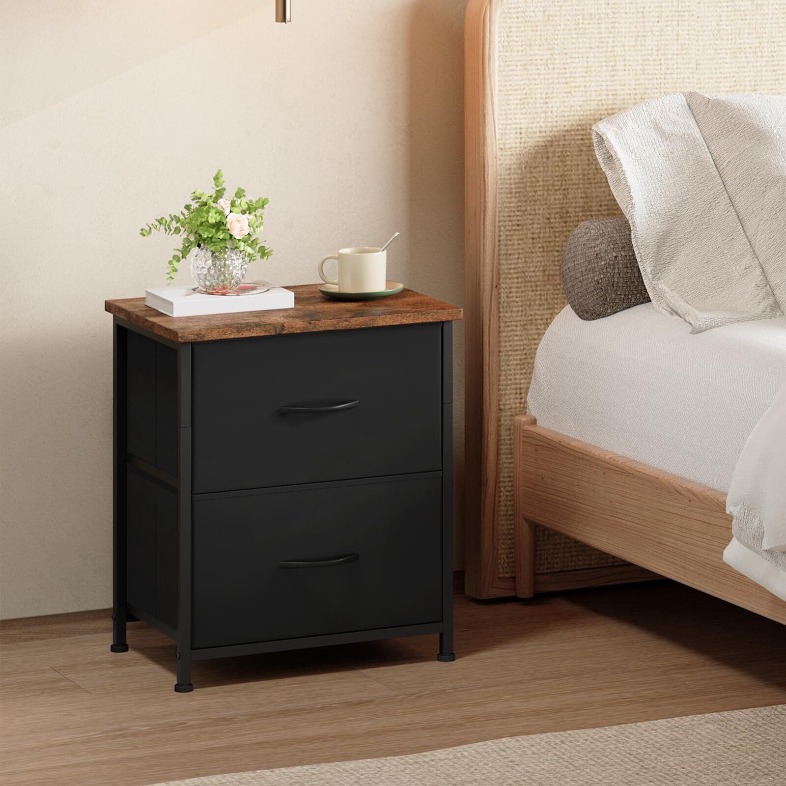 Somdot ベッドサイドテーブル チェスト タンス 収納 ナイトテーブル ソファー おしゃれ 棚付き 引き出し 幅40 奥行30 高50 布製 night table リビング スリム 一人暮らし ブラック