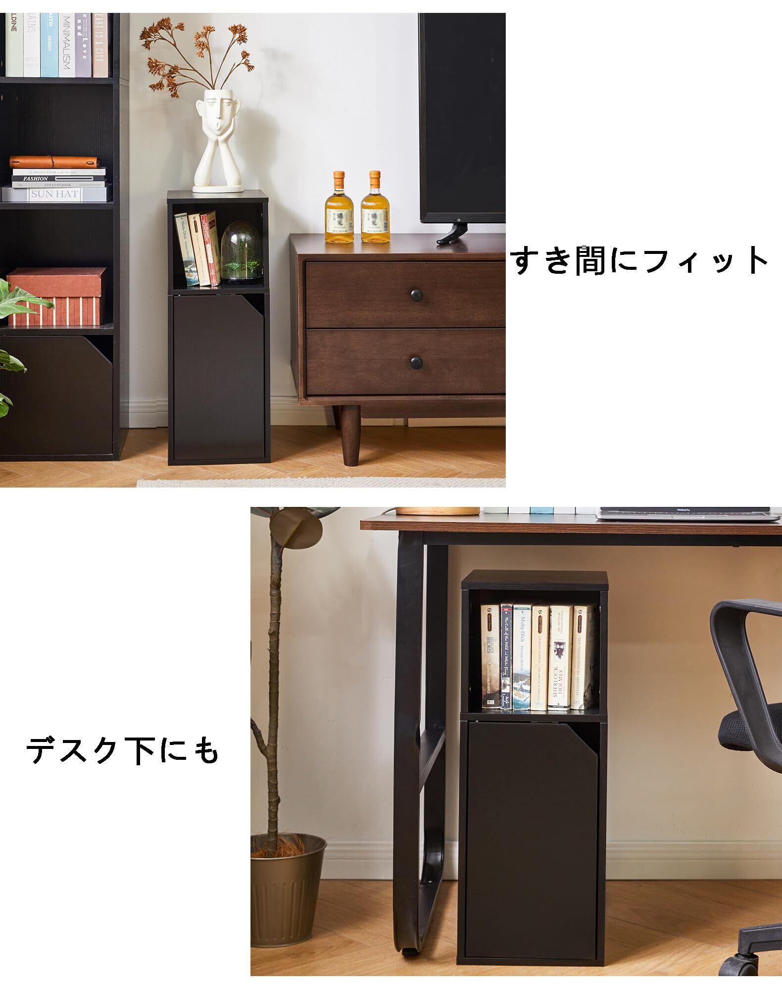 YMYNY ナイトテーブル 扉付き サイドテーブル スリム〔左開き〕 へたりにくいMDFボード コンパクト 簡単組立 隙間棚 ナイトスタンド ソファテーブル ベッド横 小物収納 寝室 玄関 卓下 ブラック 999HST016B