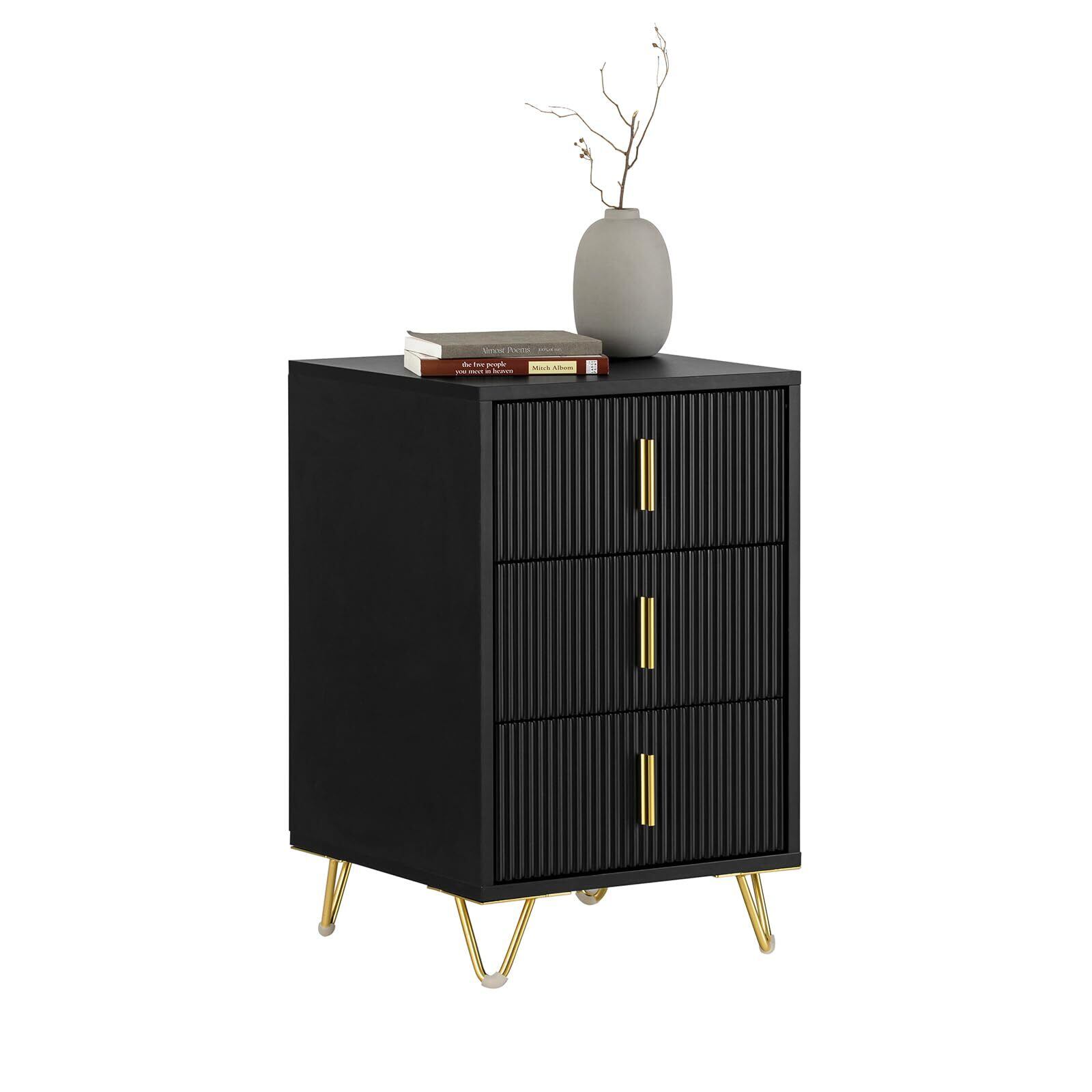 【オシャレ北欧風】ゴールド部件と黑いナイトテーブルを組み合わせってモダンな印象を与え、部屋に高級な雰囲気をもたらします。