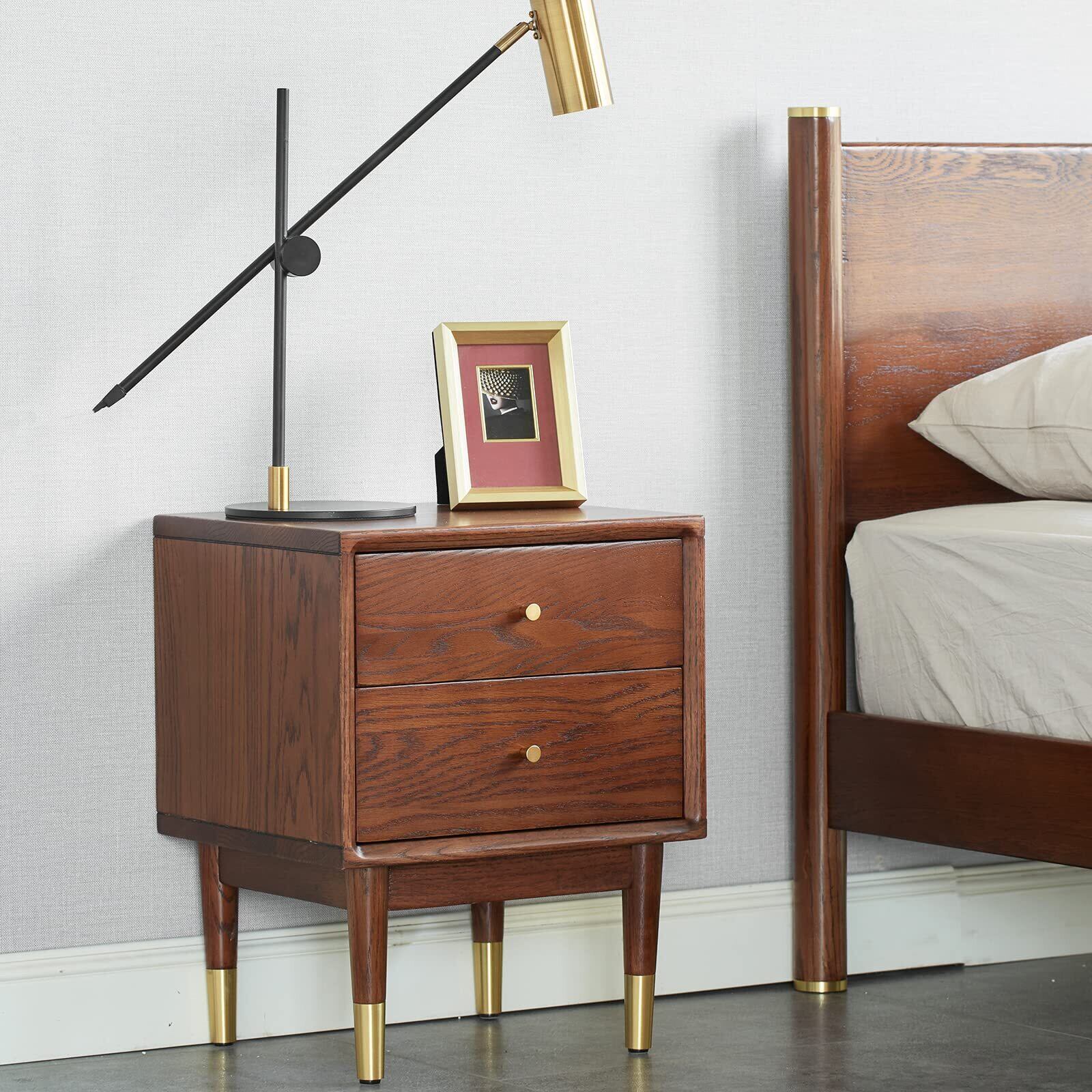 サイドテーブル アメリカオークウッド ベッドサイドテーブル ナイトテーブル アメリカオークウッド 木製 無垢材 アンティーク 引き出し2つ付き 収納しやすい 組立不要 高さ50cm×幅40cm×奥35cm