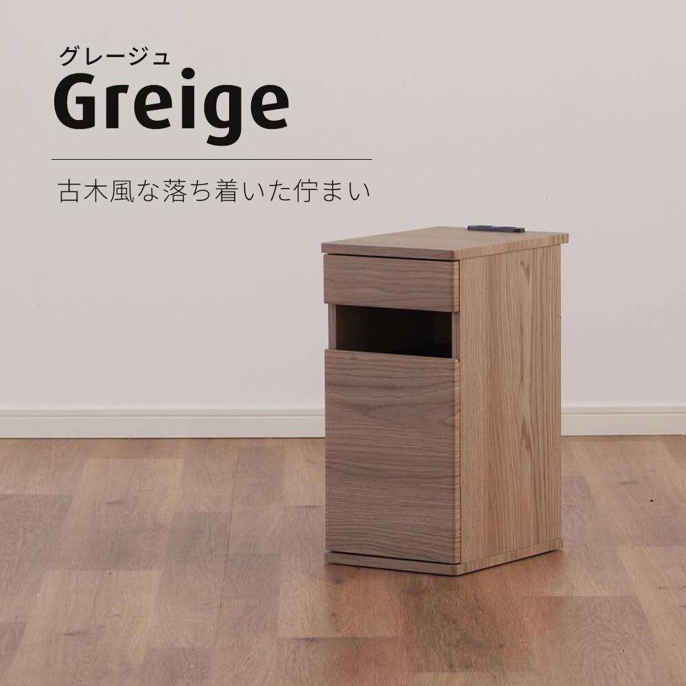 完成品 ごみ箱付き ソフトクローズ扉 ナイトテーブル コンセント付き 幅25 高め サイドテーブル ベッド横 ベッドサイドテーブル 引き出し スリム 木製 スタイリー (GY グレージュ)