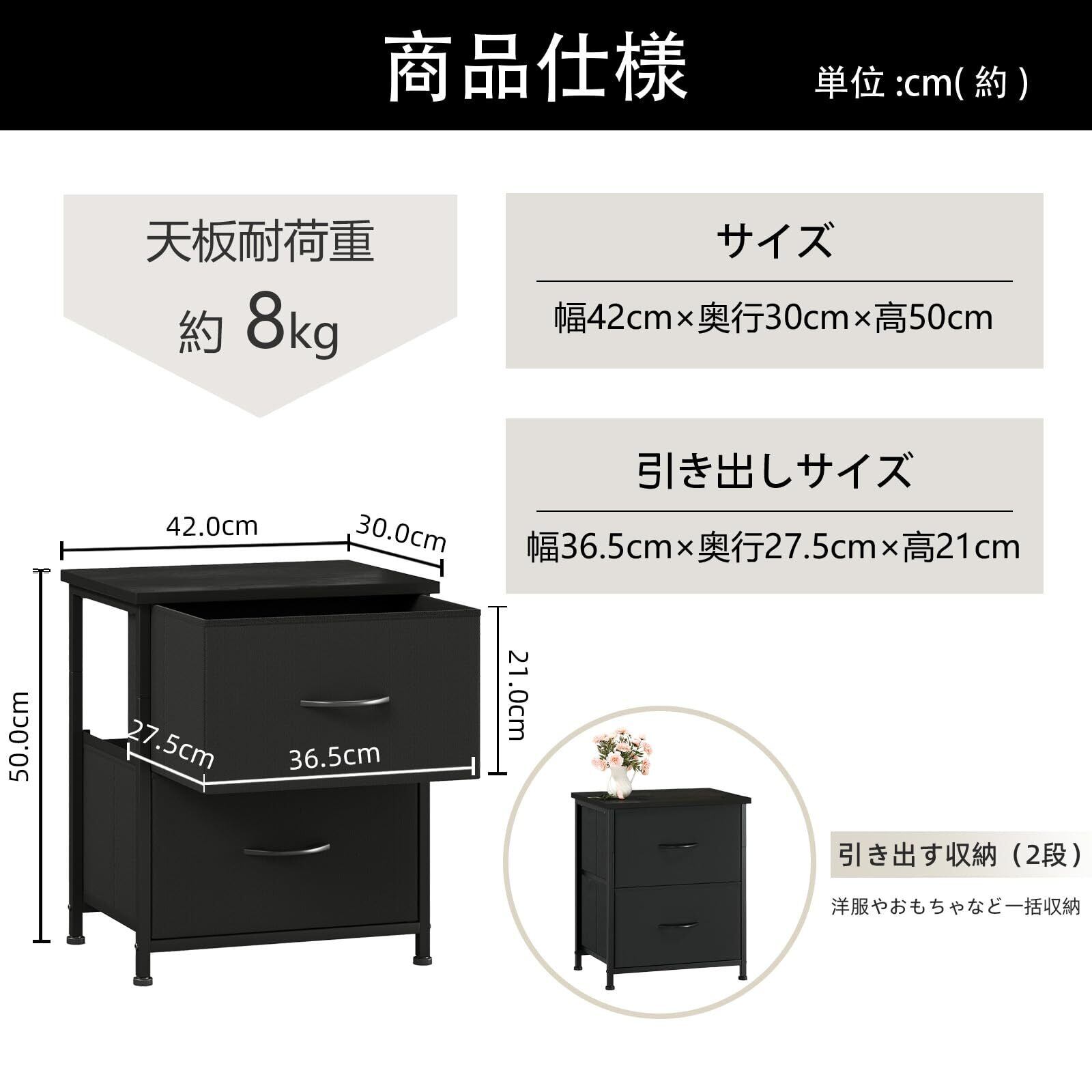 Somdot ベッドサイドテーブル チェスト タンス 収納 ナイトテーブル ソファー おしゃれ 棚付き 引き出し 幅40 奥行30 高50 布製 night table リビング 一人暮らし 2段 黒