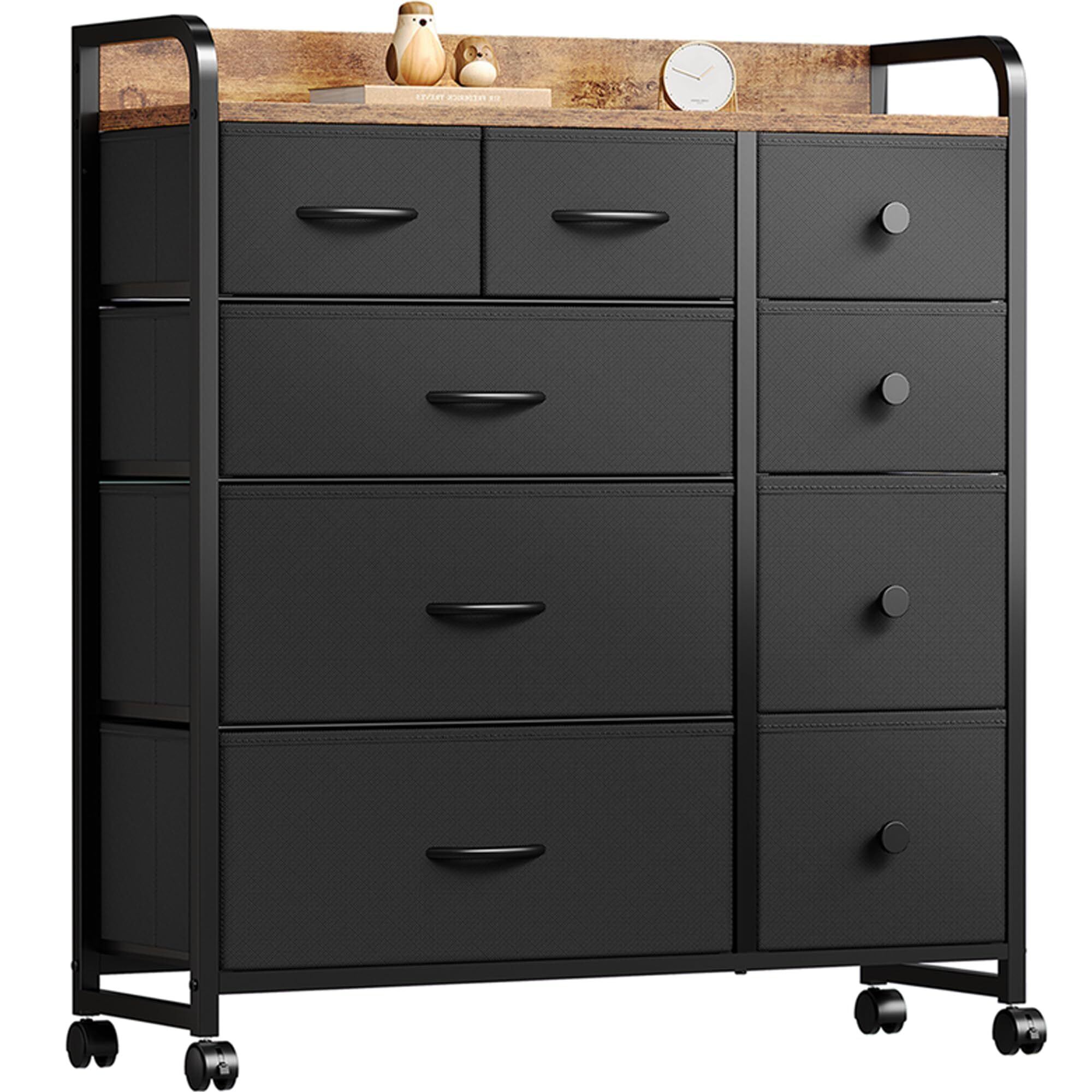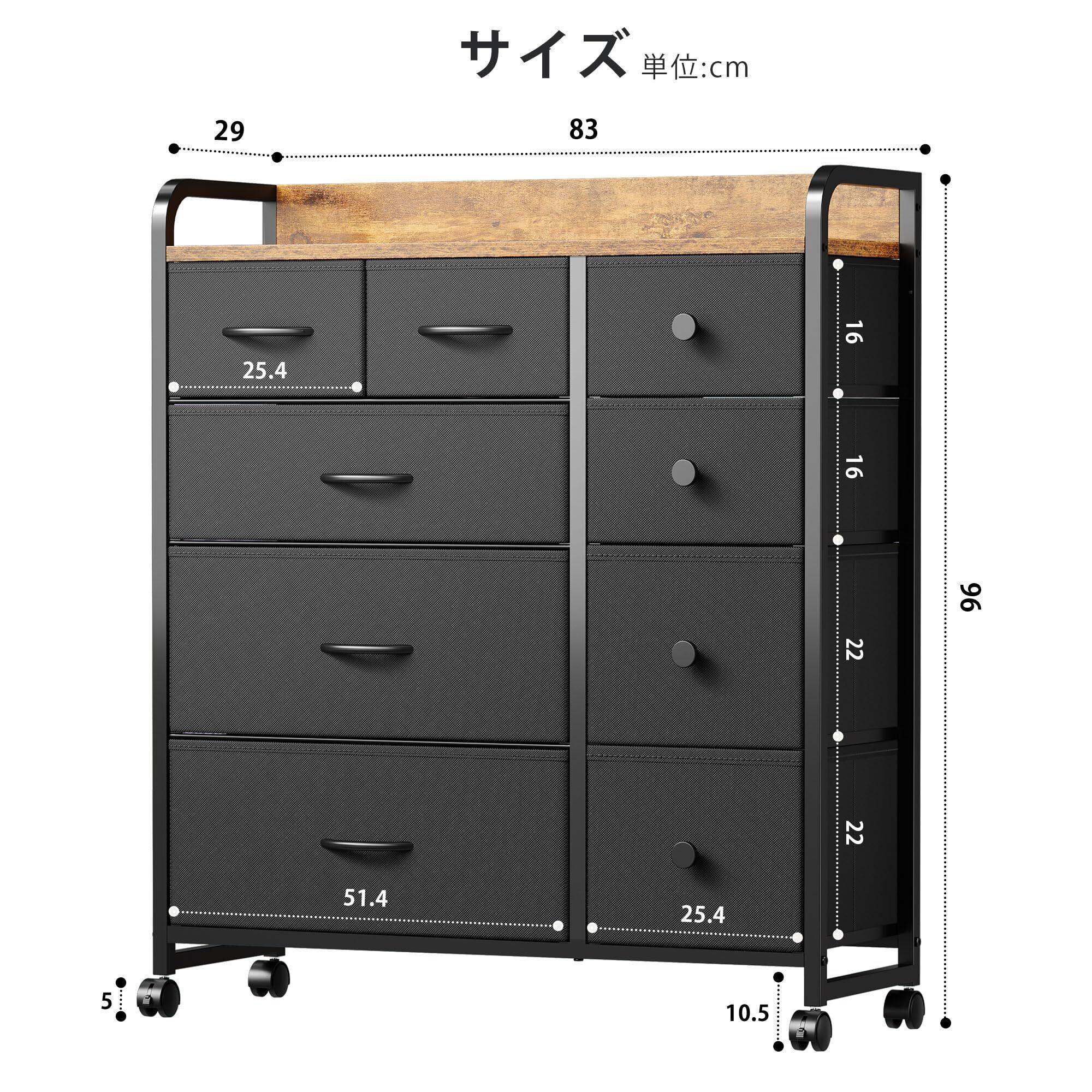 タンス 収納 チェスト 洋服収納 おしゃれ 洋服タンス キャスター付き 大容量 衣装棚 衣裝ケース リビング 引き出し 脱衣所 棚 衣類チェスト 箪笥 木製天板付き 和風 布製引き出し 転倒防止 安定感 L83×W29×H93cm(4段9杯 ピンテージ)