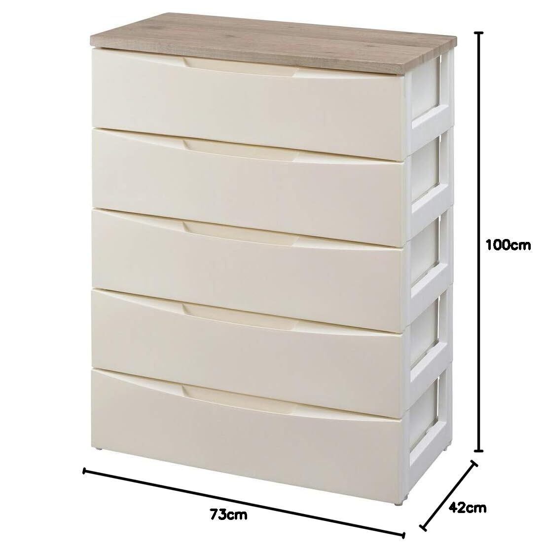 アイリスオーヤマ チェスト 5段 届いてすぐ使える完成品 デザイン 日本製 木天板 約幅73×奥行42×高さ100㎝ アイボリー DW-725 組立不要