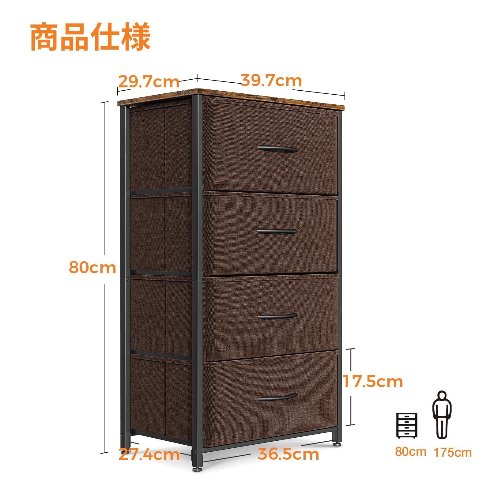 ✨【幅40cm、奥行30cm、高さ80cmのサイズ感で、リビングや寝室の限られたスペースにもぴったりフィットします!】4段の引き出しは、衣類や小物を効果的に収納し、整理整頓をサポートします。