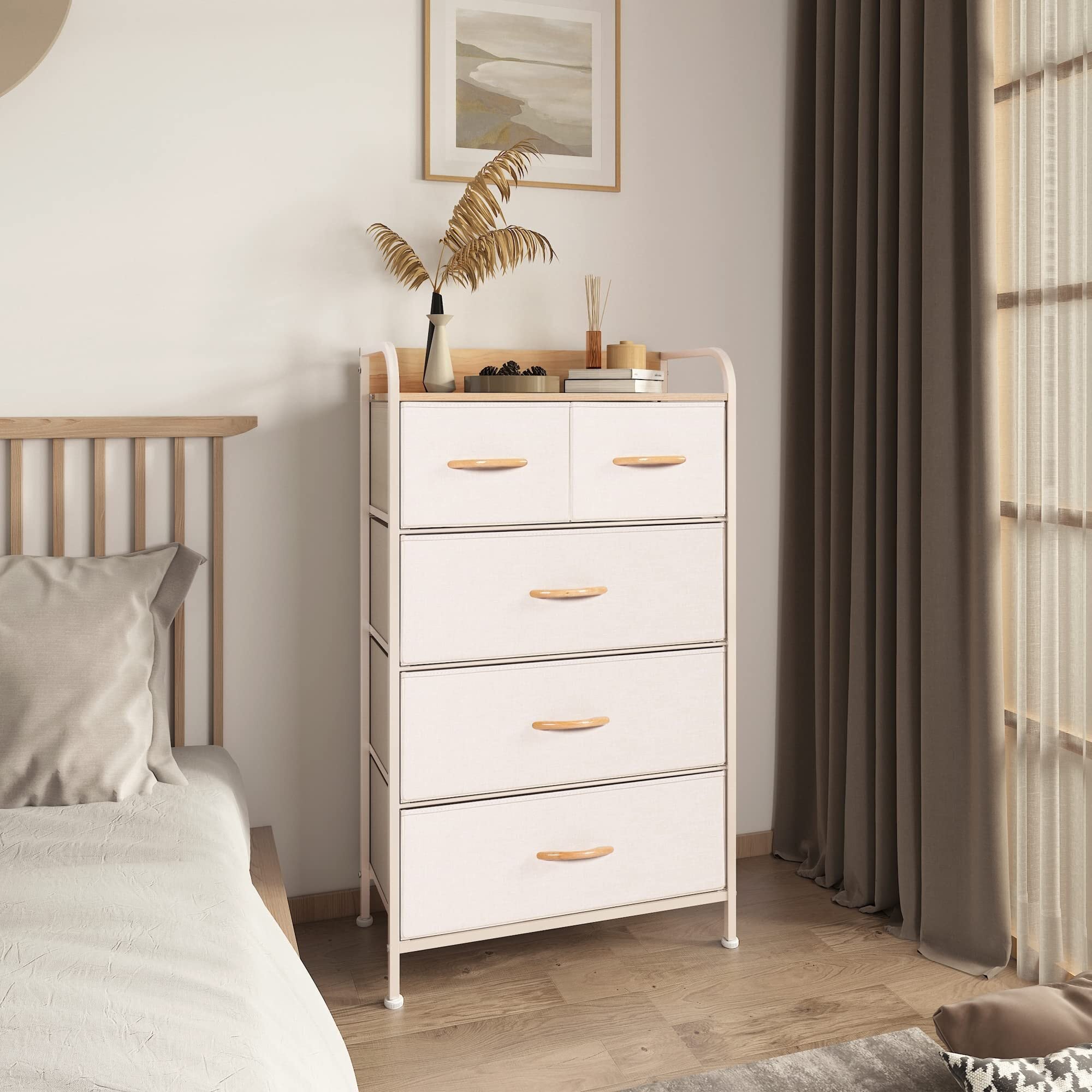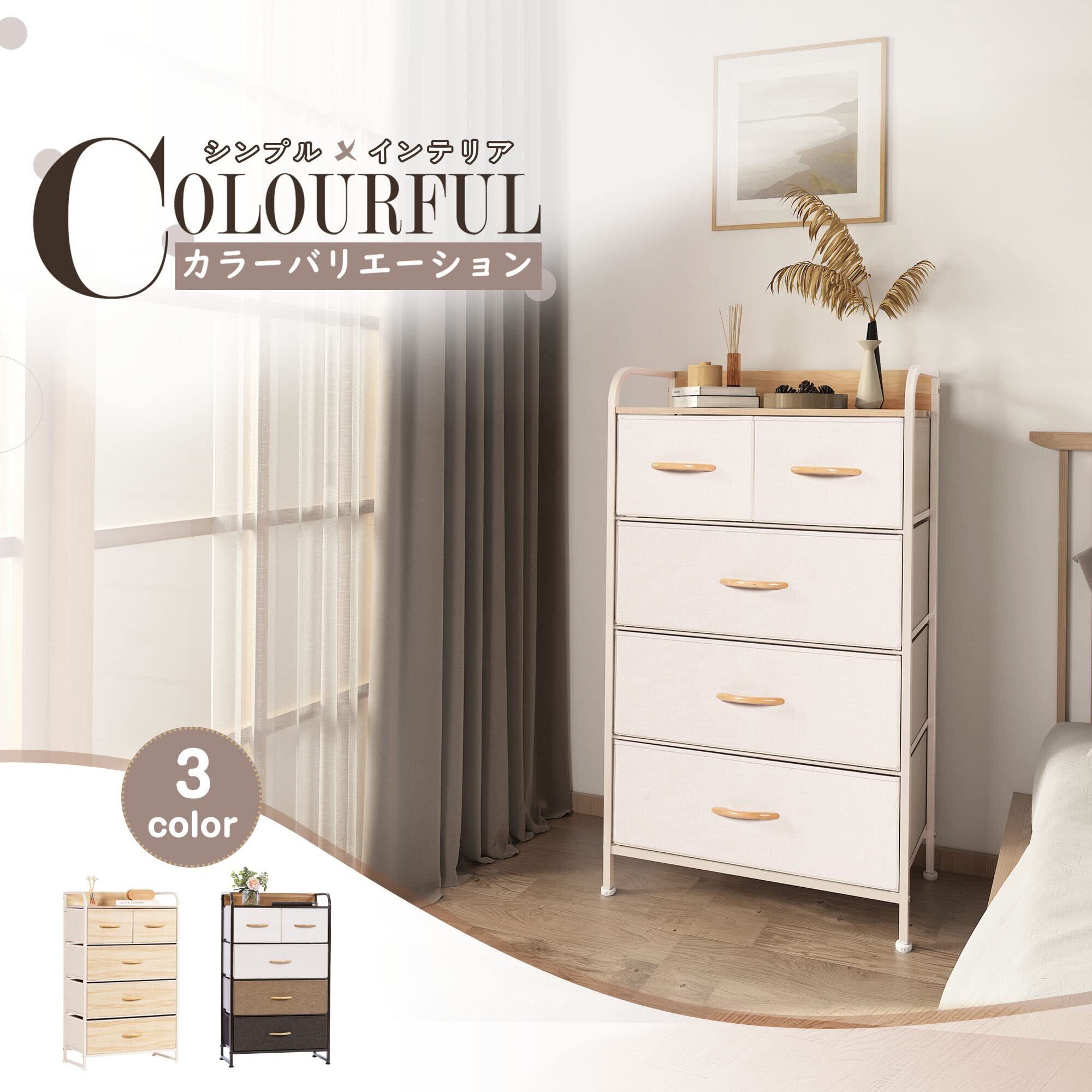 ✨【このLYNCOHOMEチェストは、一人暮らしをする方にぴったりの多機能収納です!】お洒落なベージュカラーが、部屋に温かみを加え、さまざまなインテリアに調和します。