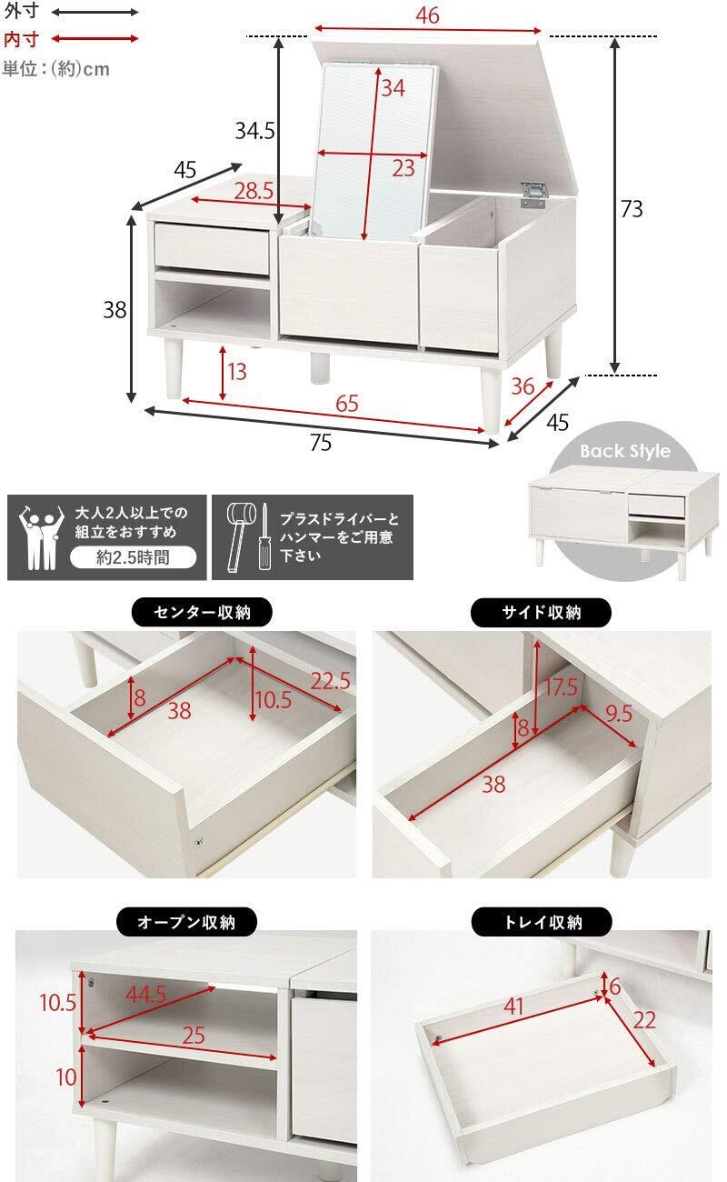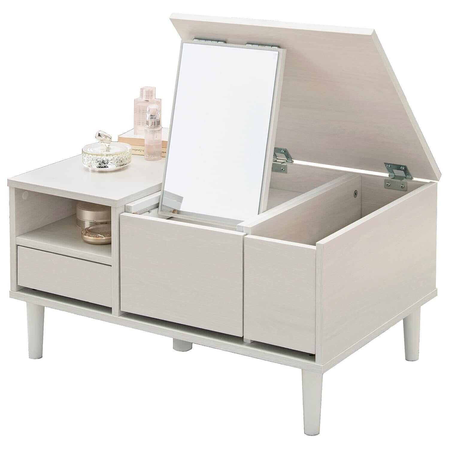 ドレッサーとテーブル一体型で、二つ置くことを諦めていた方にぴったり。1人部屋やワンルームにおすすめです。〈br〉天板を開けばドレッサーとして、閉じればテーブルとしてご利用いただけます。〈br〉収納スペースもたっぷりあり、化粧品から雑貨まで収納できます。