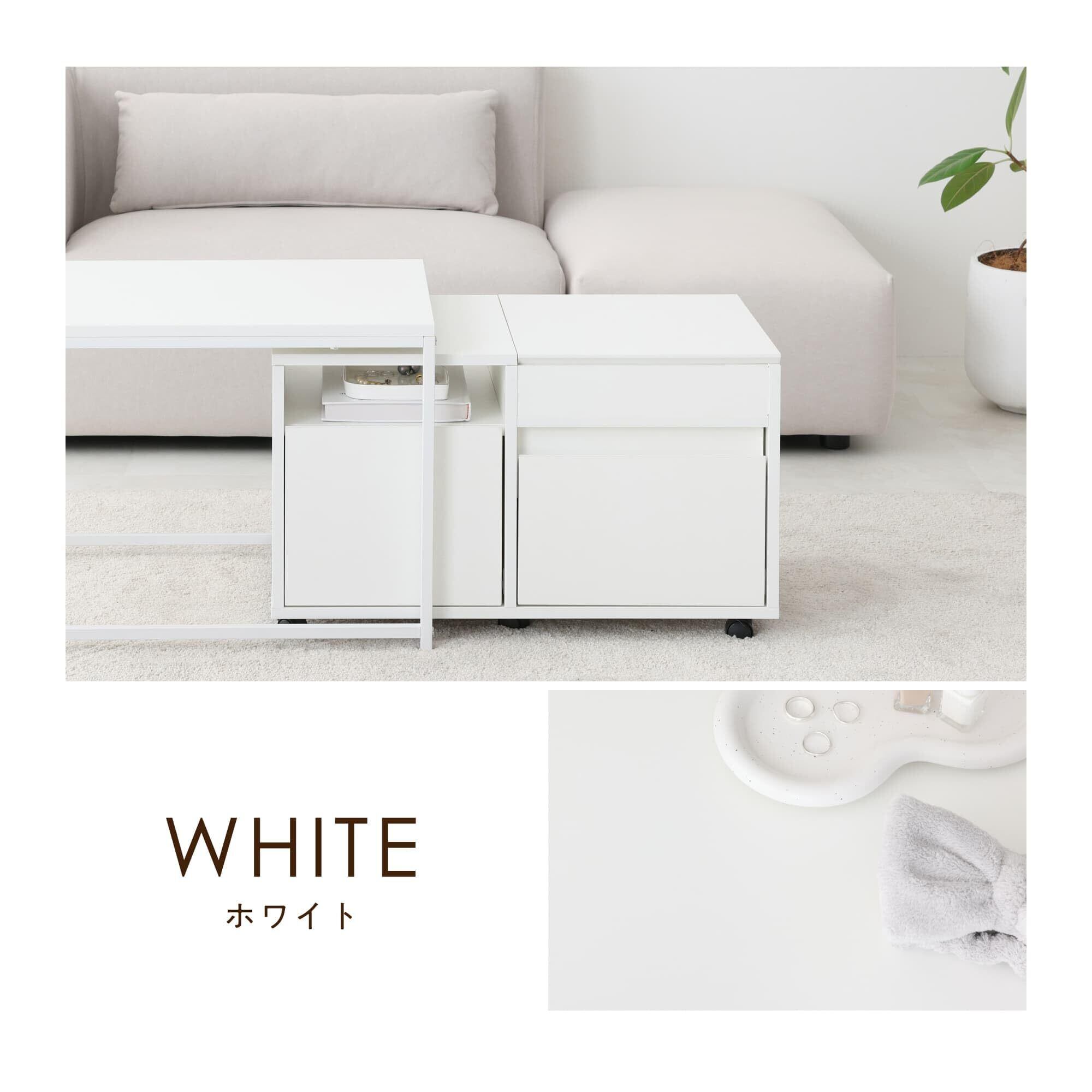 VENTOTA ドレッサー ロータイプ ネストテーブル 伸縮 木目調 引き出し付き 収納 コンパクト ローテーブル ホワイト おしゃれ 一人暮らし 省スペース Toruco-F (ホワイト)