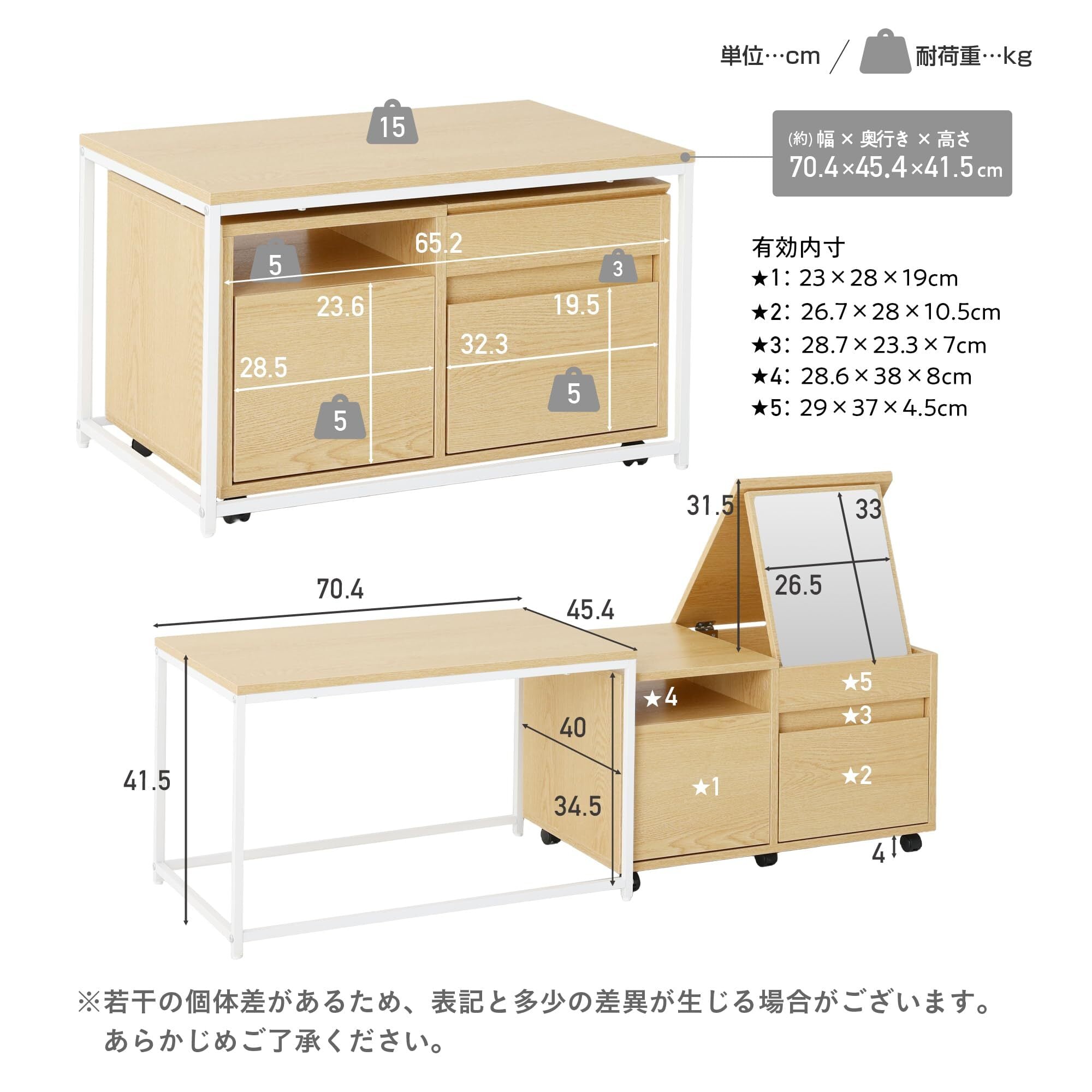 ✨【伸縮可能なローテーブルとしても使用できるため、食事や作業スペースとしても大活躍します!】引き出しの横において、使わない時は重ねて収納できます。
