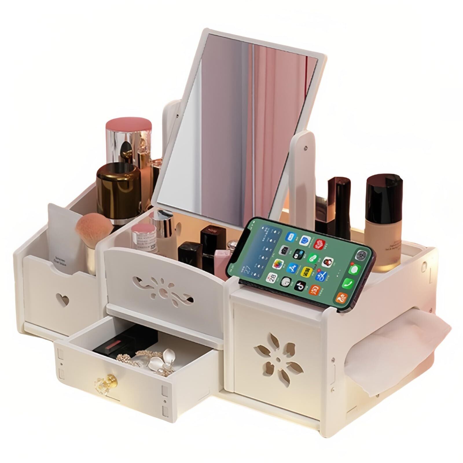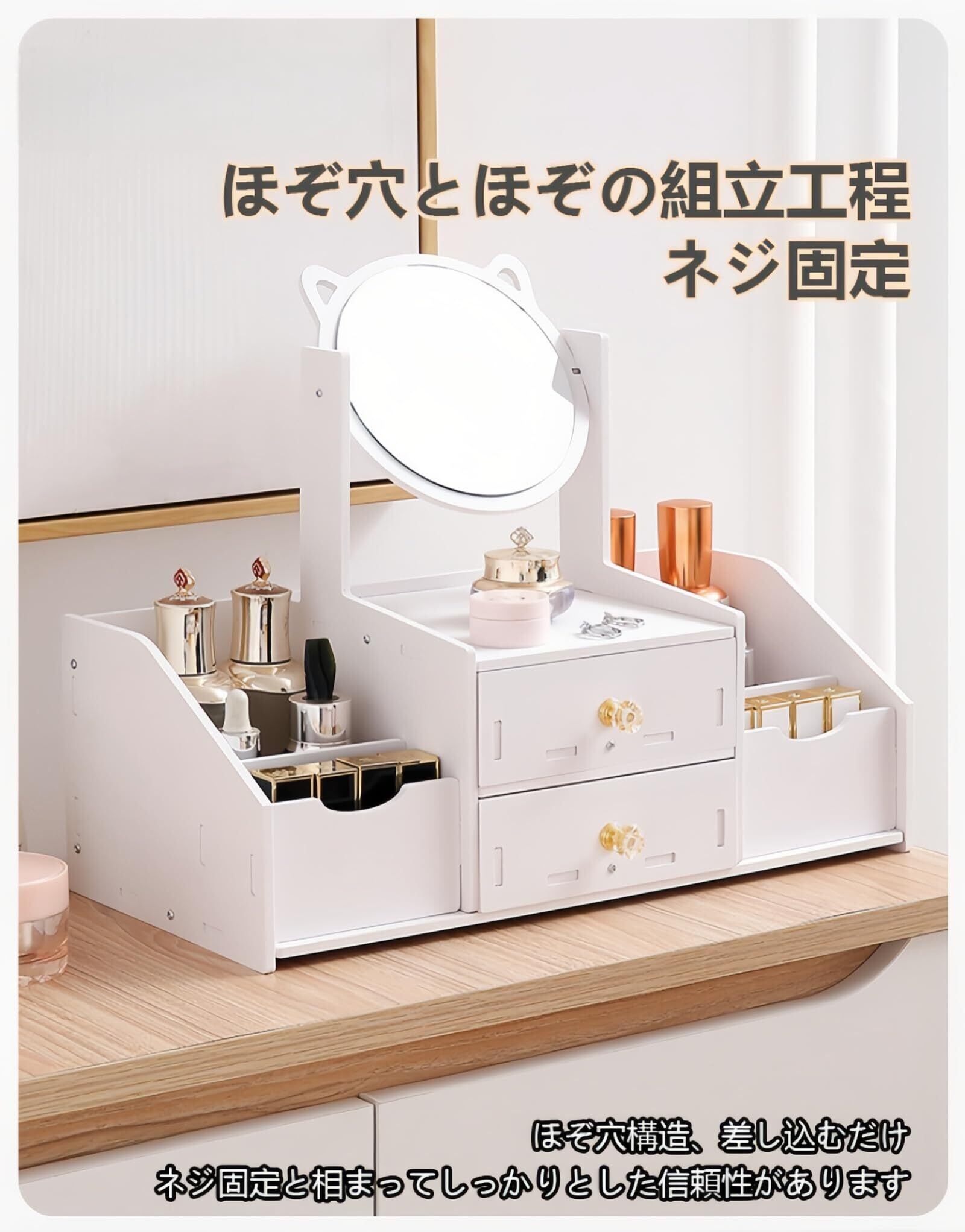 ✨【引き出し付きのデザインで、メイク用品やコスメを効率的に整理できます!】様々なサイズや種類のアイテムを分別して収納できるため、常にスッキリとした空間を保てます。