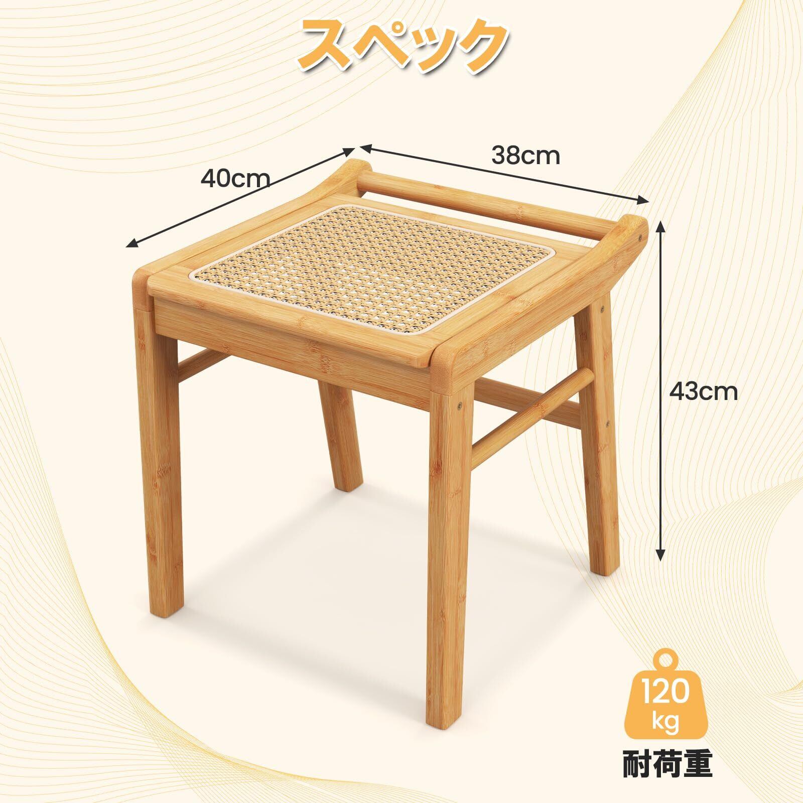 TANGKULA ドレッサーチェア 木製 ラタン風 化粧椅子 メイクイス おしゃれ 座面高さ43cm ドレッシング 鏡台用 家庭用 多機能 組立式 天然竹製 軽量 頑丈 耐久 実用 ナチュラル 寝室 リビング 玄関 コンパクト