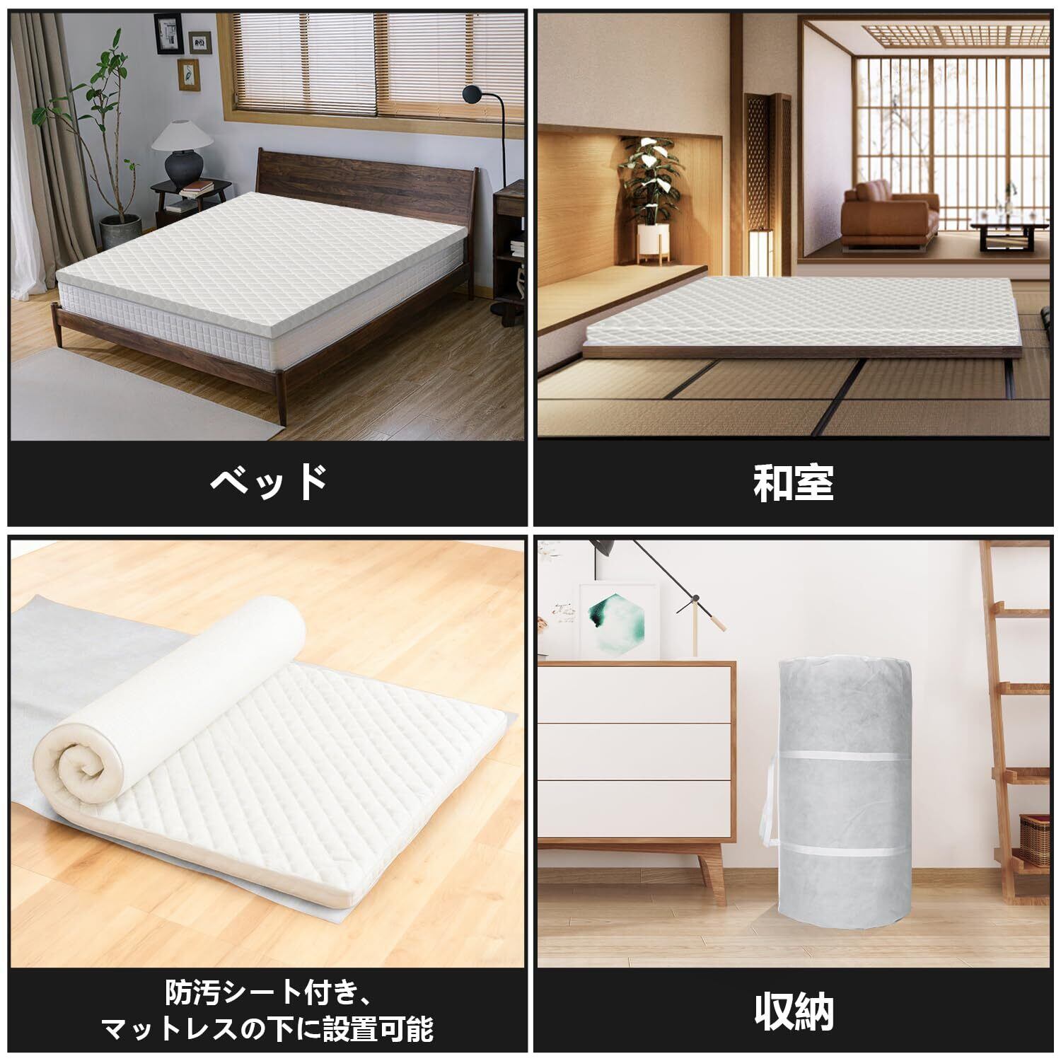 【収納便利・取り外せる外カバー】マットレスは収納袋付きで、マットレスの短い辺を真ん中から二つに折ってから丸めた後収納袋に収納できます。省スペースで場所を取りません。ファスナー付きの外カバーは簡単に取り外して洗えます。外カバーの裏側が滑り止め付きで、ふと気がつくと、マットレスがずれていることがありません。
