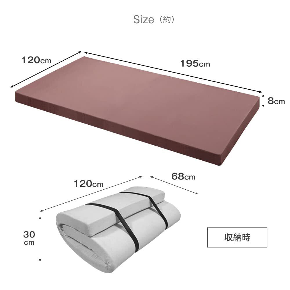 【サイズ】外寸:幅120x長さ195x厚み8cm【重量】約5.1kg(中材4.2kg)