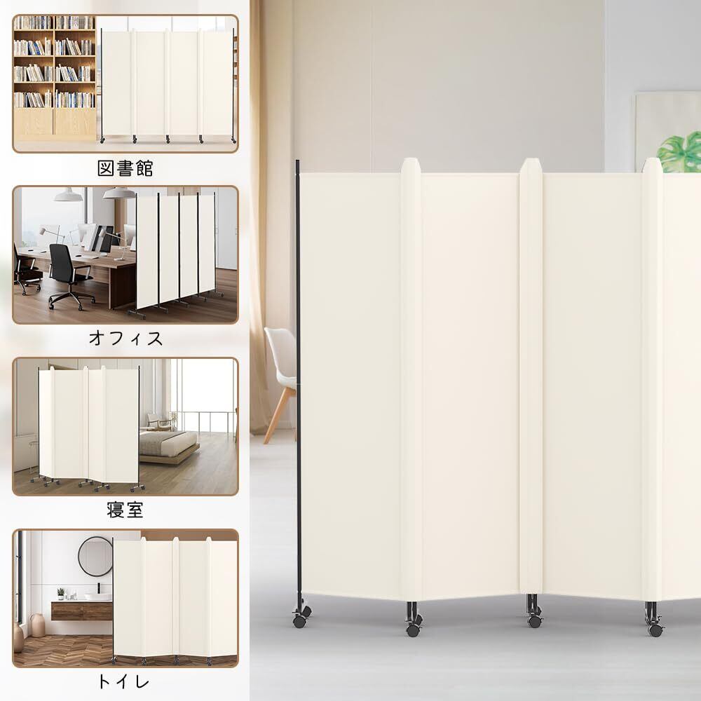 KELIXU パーテーション 間仕切り 4連 自立式 カバーストリップ付き 衝立 キャスター付き 高さ1.78m×幅2.24m 布タイプ 折りたたみ 仕切りパネル 軽量 クロスパーテーション 目隠し 屏風 おしゃれ 組み立て簡単 部屋 オフィス 会議室 (ベージュ)