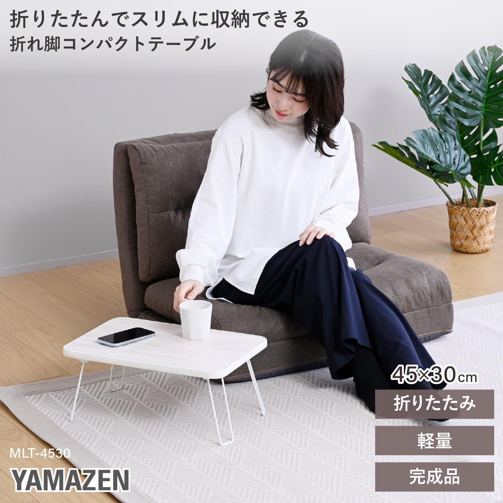 \【◆山善(YAMAZEN) ローテーブル 折りたたみ 幅45×奥行30×高さ20cm コンパクト ミニ 折れ脚 簡易タイプ 一人暮らし 完成品 ホワイト MLT-4530(GWH)】】シンプルで使い勝手抜群のローテーブルです!/