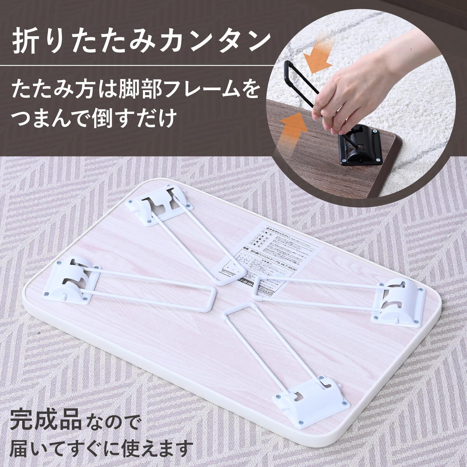 このテーブルは折りたたみ可能です。使用時は重さ20kg以内にしてください。折りたたみや展開時には指などが挟まれる可能性がありますので、注意して操作してください。