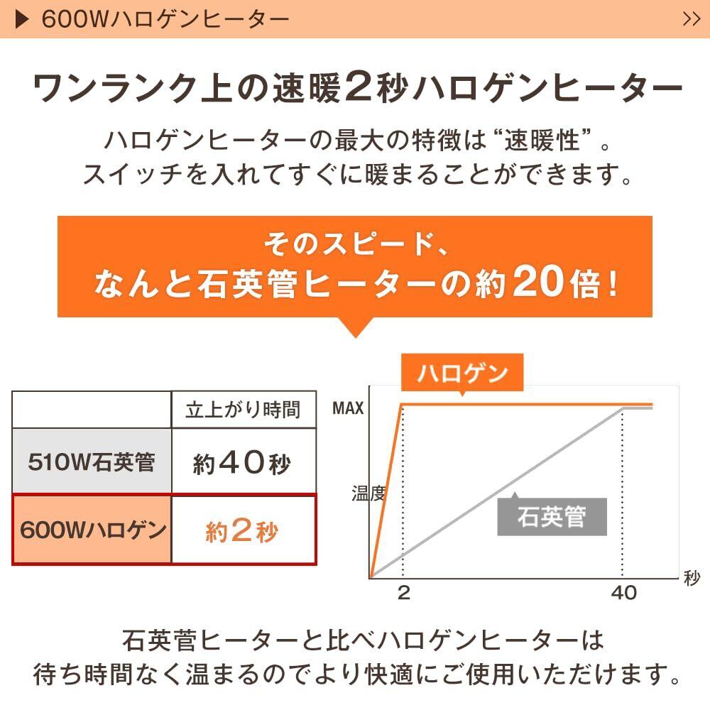 ✨【600Wのハロゲンヒーターを搭載し、たったの2秒で暖かさを実感できます!】寒い冬の日でも、すぐに温まるのが嬉しいポイントです。