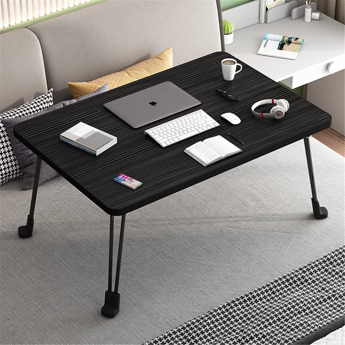 \【◆2025年NEW多機能 机 非常に安定している 折りたたみテーブル 机 低い 折りたたみ テーブル 一人暮らし 机 小さい 座卓 パソコンデスク 多機能 PCデスク ミニテーブル 引き出し 学習 ベッド ソファ 食事 利用可 (長60*幅40cm*高さ29cm, ブラック)】】シンプルで機能的な折りたたみテーブルです!/