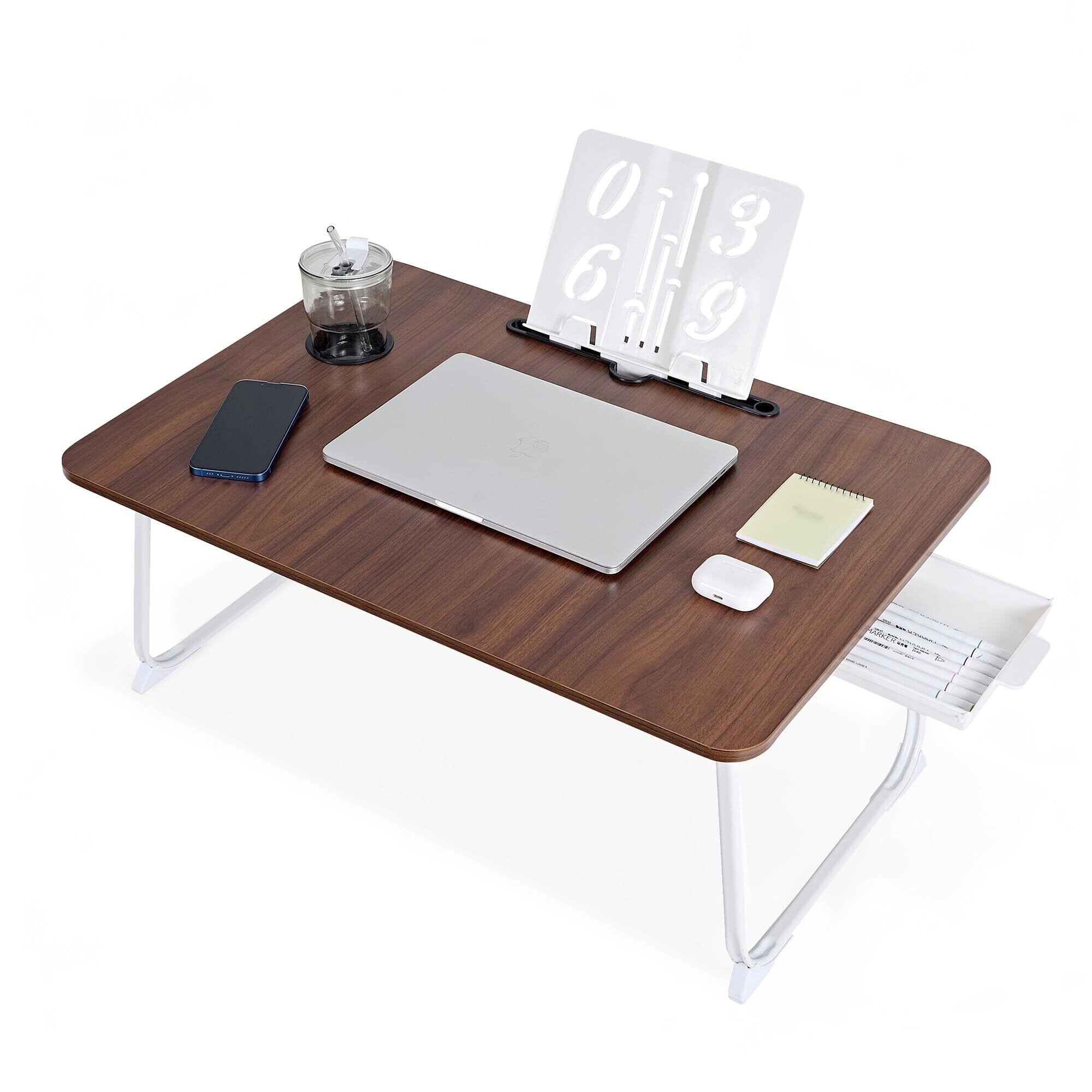 \【◆VECELO ローテーブル 折りたたみテーブル 幅70×奥行48×高さ30cm ブラウン ベッドテーブル ミニテーブル 滑り止め付き 引き出し付き 凹溝付き ブックスタンド付き 軽量 多機能 省スペース コンパクト 一人暮らし 子供 シンプル】】使い勝手抜群の折りたたみテーブルです!/