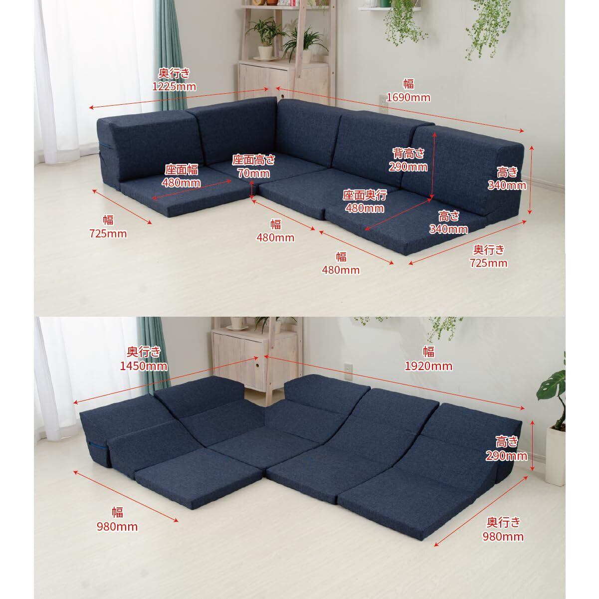 【サイズ】 1人掛け:(約)幅48×奥行72.5~98×高さ29~34cm、座面奥行48cm コーナー:(約)幅72.5~98×奥行72.5~98×高さ29~34cm、座面奥行48cm ※座面高は一番厚さがある部分で7cmです。