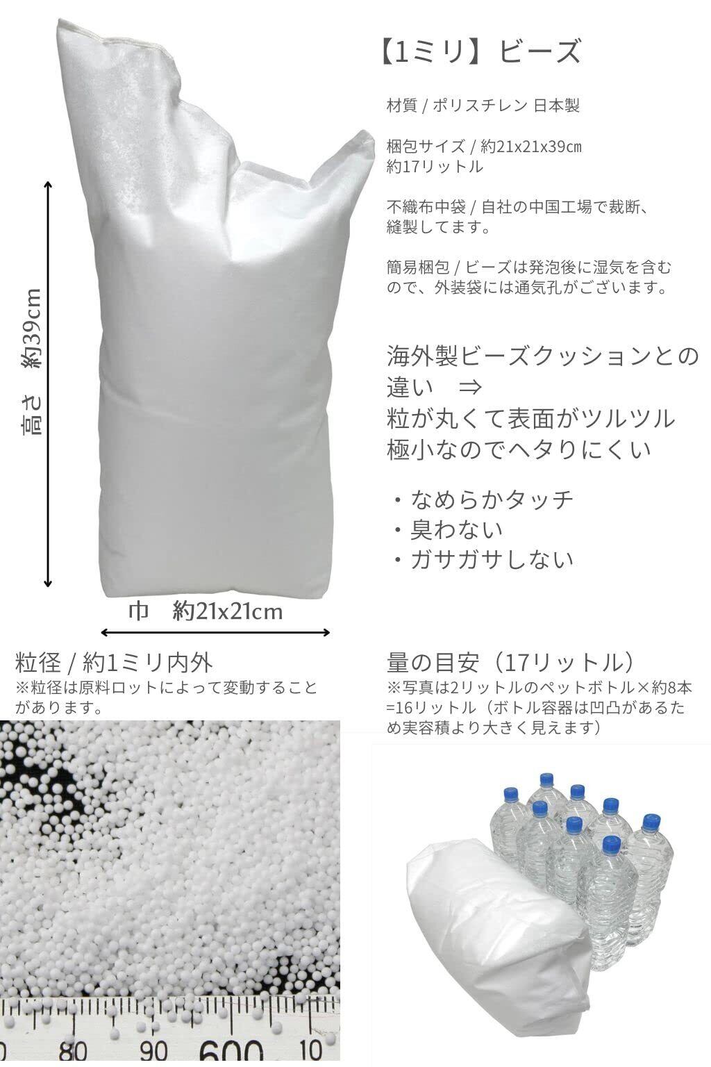 素材/極小発泡ビーズ(マイクロビーズ) ポリスチレン100% 日本製