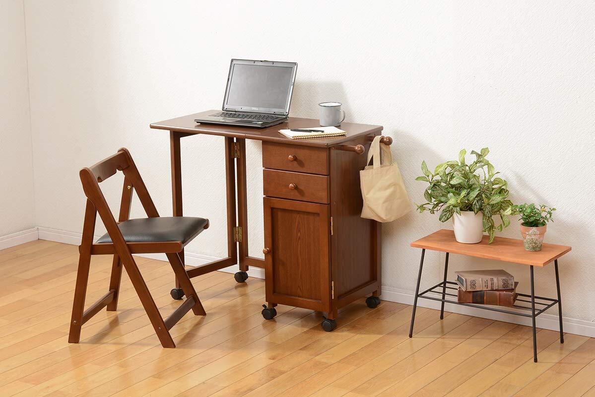【別売りデスクとの組み合わせも】専用のサイドフックが付いたデスクと合わせれば、使わない時に省スペースで収納できます。