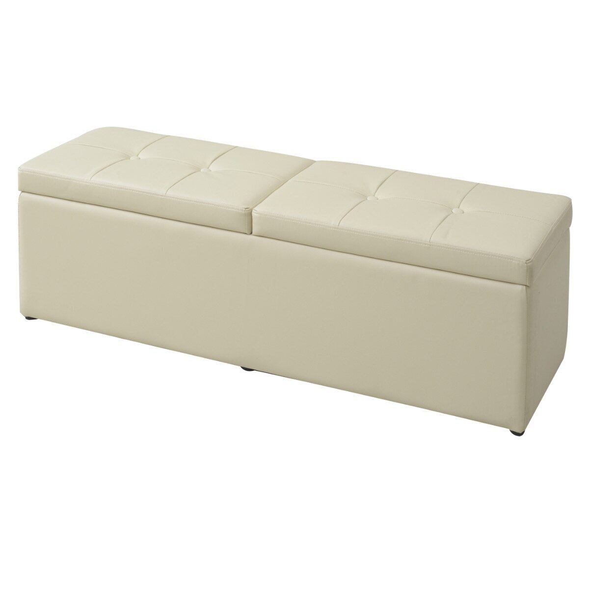 ✨【この山善のスツール収納ベンチは、アイボリーの合皮素材が特徴で、どんなインテリアにも調和しやすいデザインです!】幅120cmの広々とした座面は、リビングや玄関での使用に最適です。